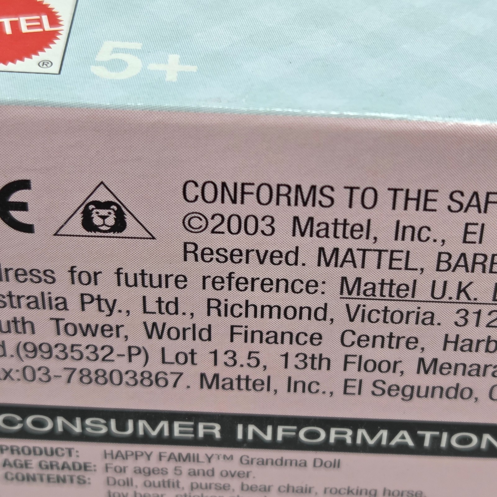2003 BARBIE HAPPY FAMILY NEIGHBORHOOD GRANDMA DOLL MATTEL B7690 NEW IN BOX
