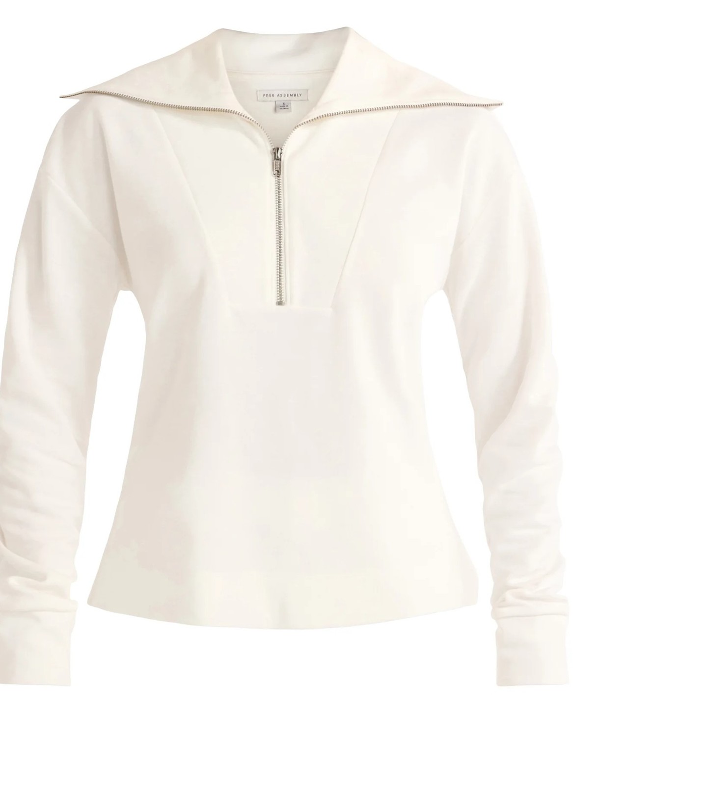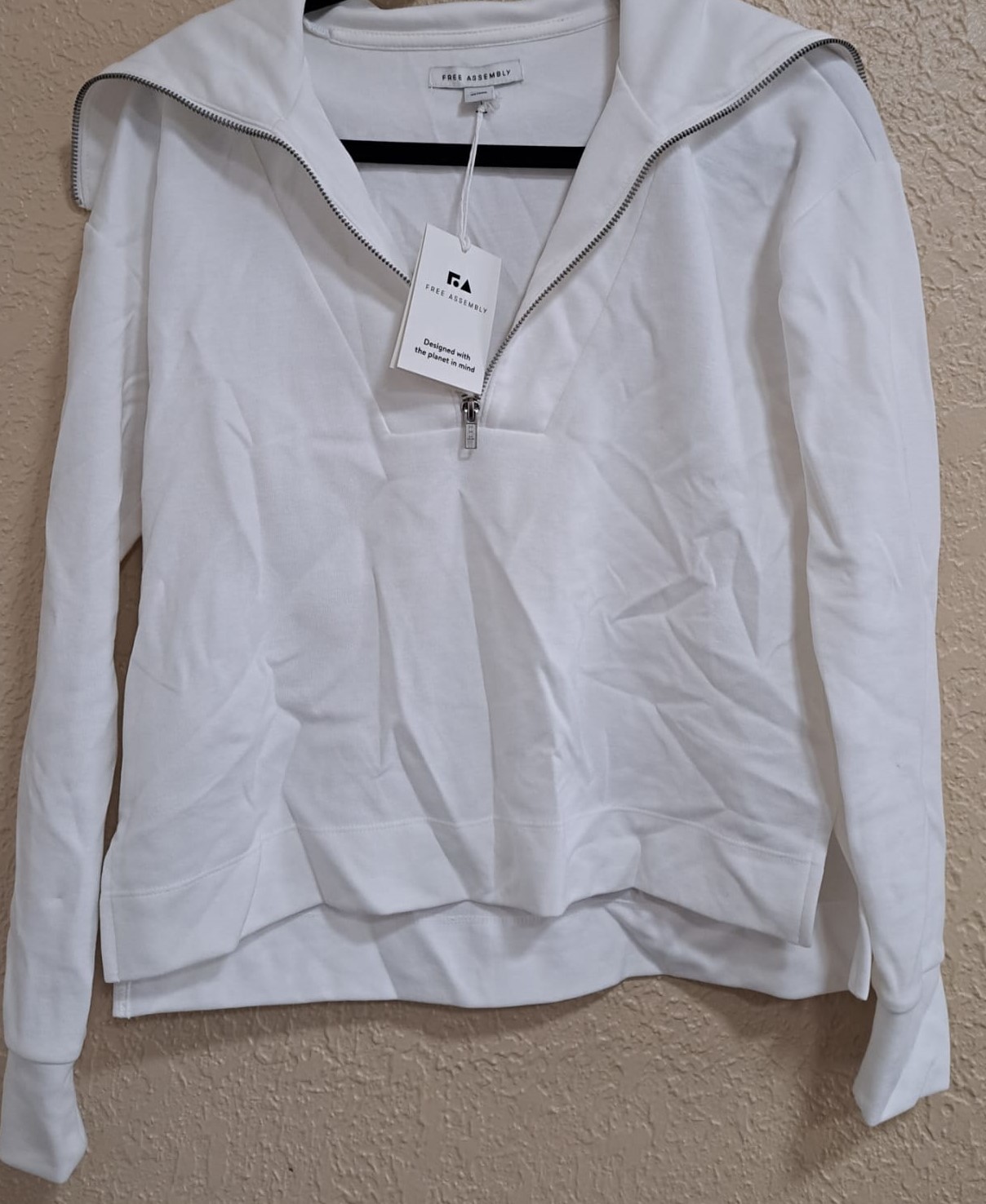 The Free Assembly Women’s Half-Zip Pullover Sweatshirt in size Small is a stylish and comfortable layering essential for casual everyday wear. Made from a soft cotton-blend fabric, this sweatshirt offers a cozy feel with just the right amount of structure. The half-zip neckline allows for easy on-and-off and adjustable coverage, while the relaxed fit provides a laid-back, modern silhouette. Designed with dropped shoulders and ribbed cuffs and hem, it combines fashion and function effortlessly. This half-zip pullover is perfect for layering over tees or tanks and pairs well with jeans, leggings, or joggers. Whether you're running errands, lounging at home, or heading out for a walk, this versatile women’s sweatshirt delivers comfort and style in one easy piece. Machine washable and easy to care for, it’s a go-to choice for everyday fashion.