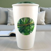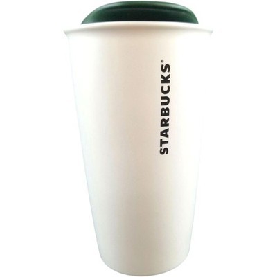 Starbucks 2014 White Green Gold Circle Ceramic 12 Oz Travel Coffee Tumbler w/Lid