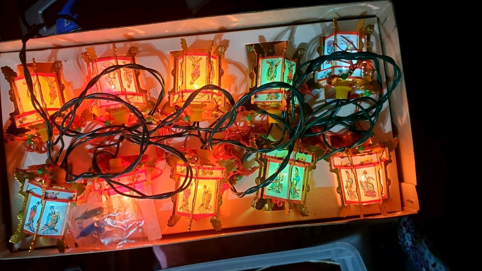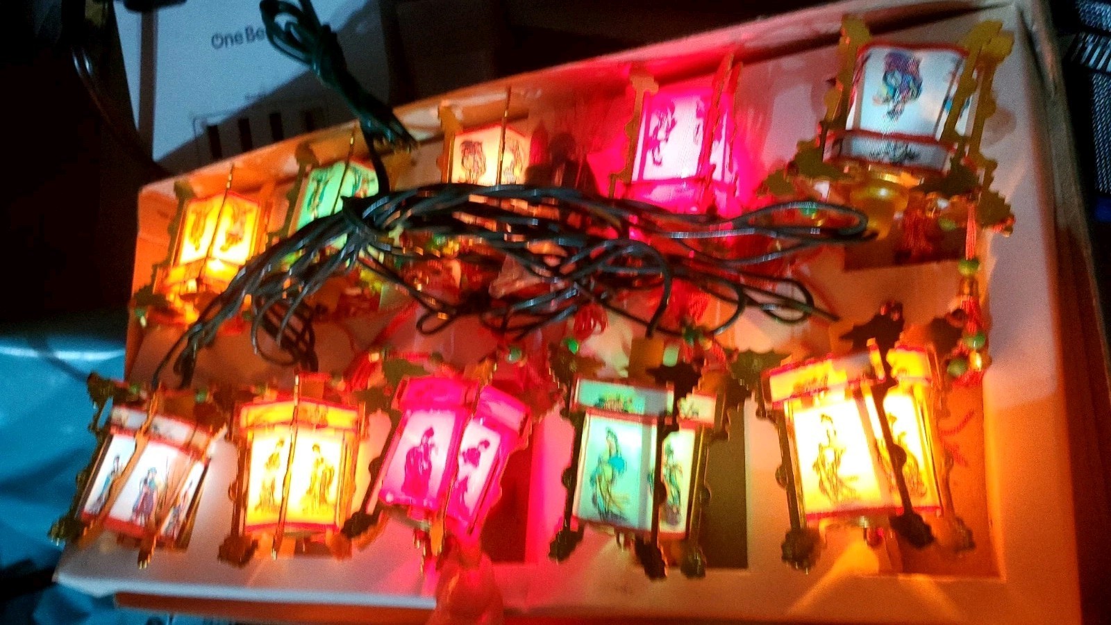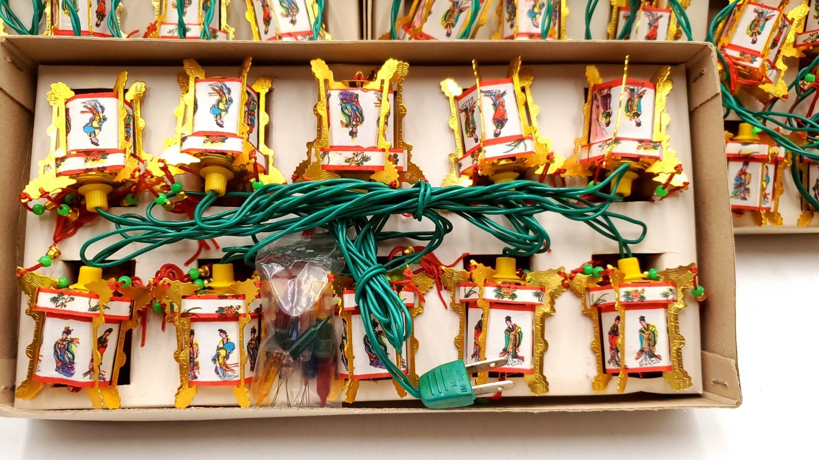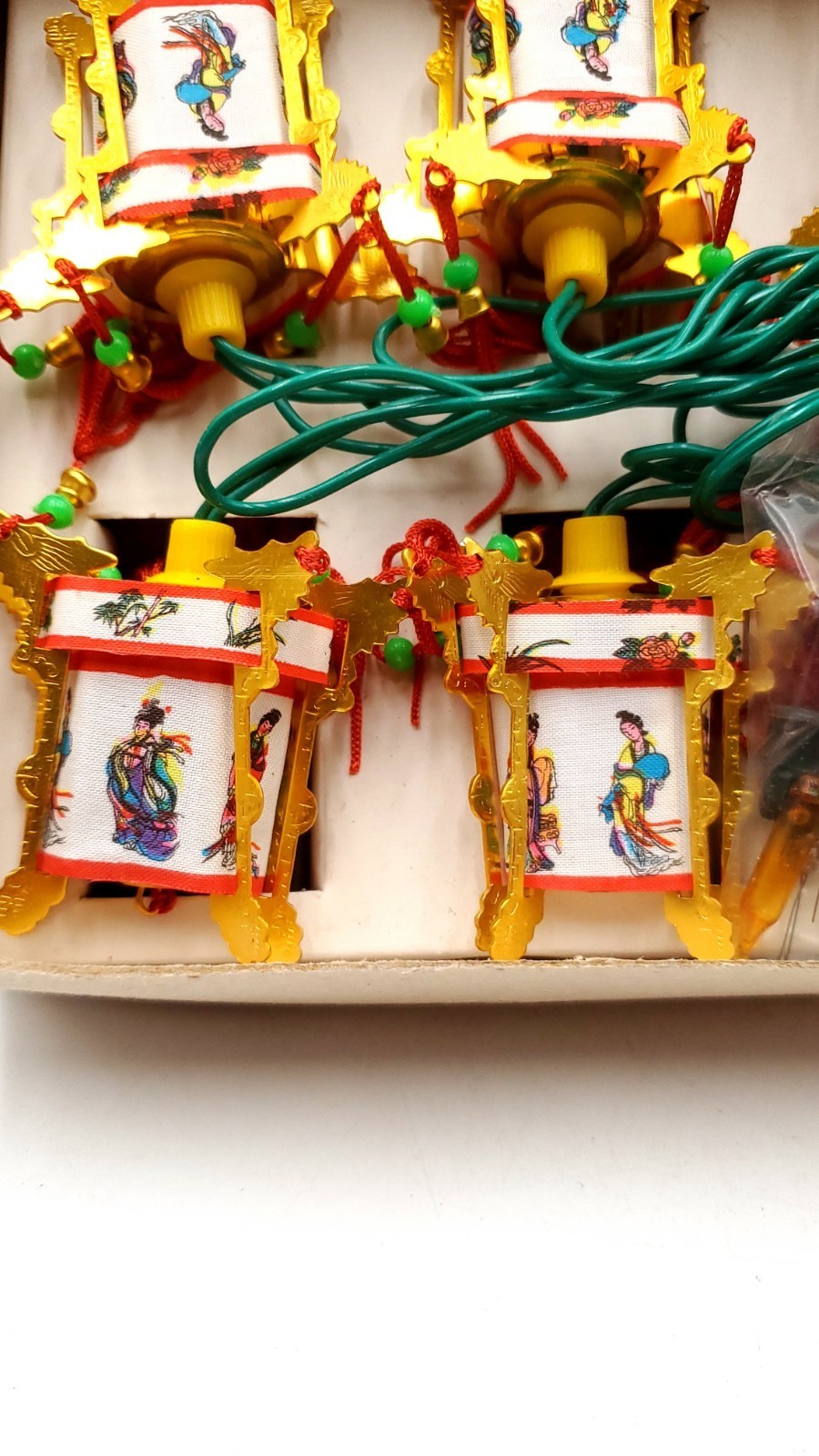 3 Vintage Miniature Chinese 10 Lantern String Lights Tassels Christmas Colors