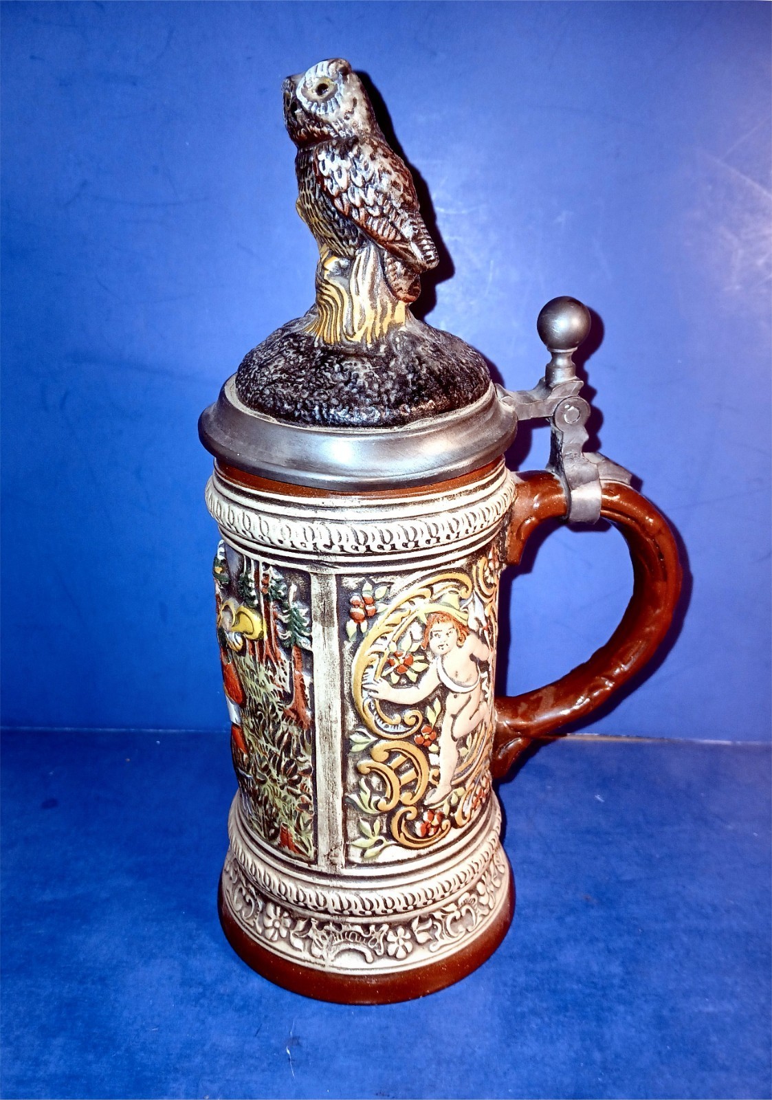 Vintage GERZ DRM Zinn Beer Stein W/ Owl Lid and 49 similar items