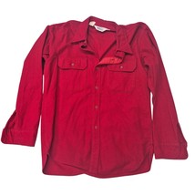 VTG 1980s Woolrich Cotton Flannel Shirt Cherry Red 2 Pocket Sheep Label Sz L USA