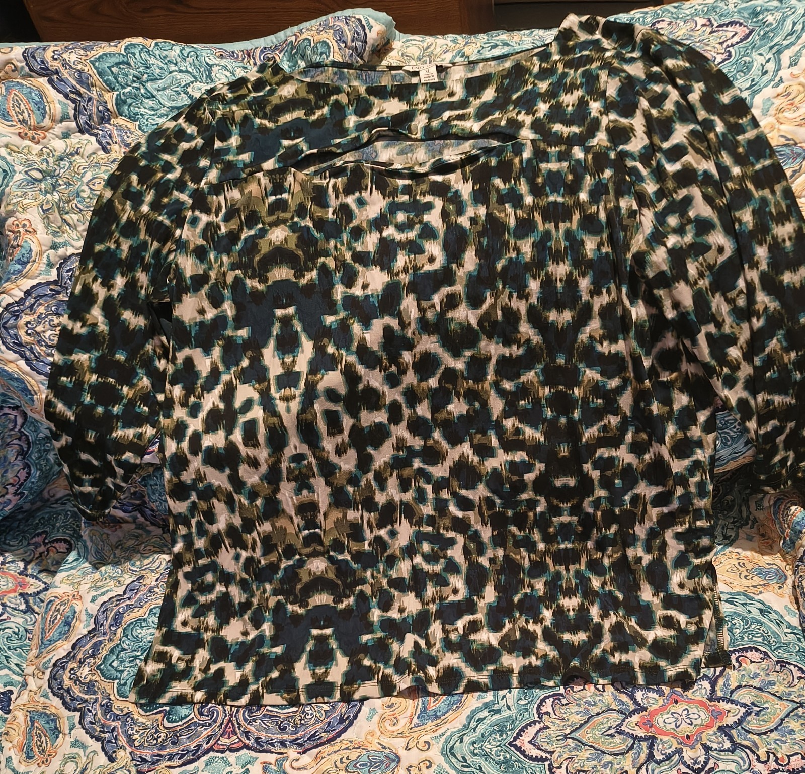 Cato Women?s Leopard Print Tunic Blouse Top 3/4 Sleeve Plus Size XL Grannycore