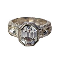 Wood-Grain Style Silver Tone Ring Band Sz 8.5 Crystal Stones Marked W/A Vintage