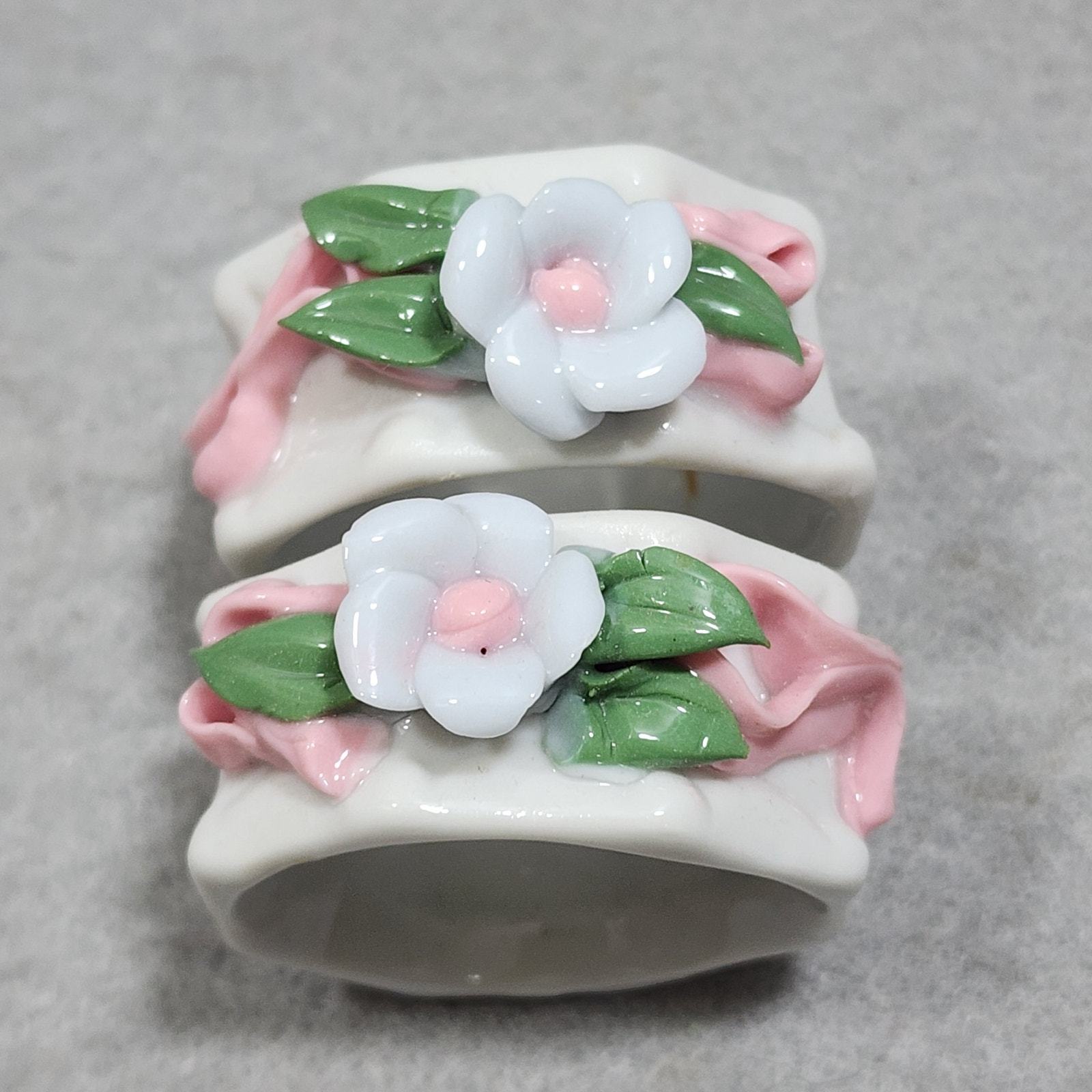 6 Porcelain 3D Floral Design Napkin Rings Cottage Chic Vintage Farmhouse Decor