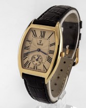 Baume Mercier 18k Oro Amarillo Tonneau Correa Manual Reloj W/ Cuero Negro
