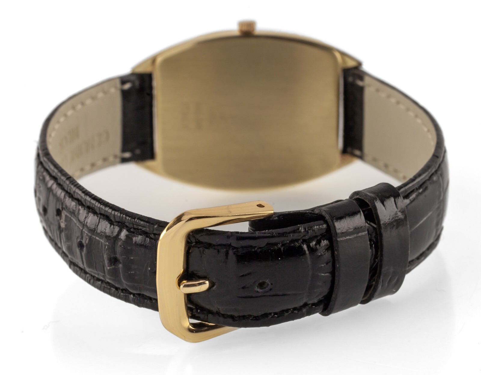 Vencimiento de 14k Gold Yellow Tonneau Women's Watch con Dial Guilloche y Banda de Cuero
