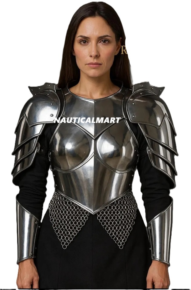 Medieval Knight Fantasy Lady Warrior Pauldrons,Gorget, Corset & Chainmail -Women