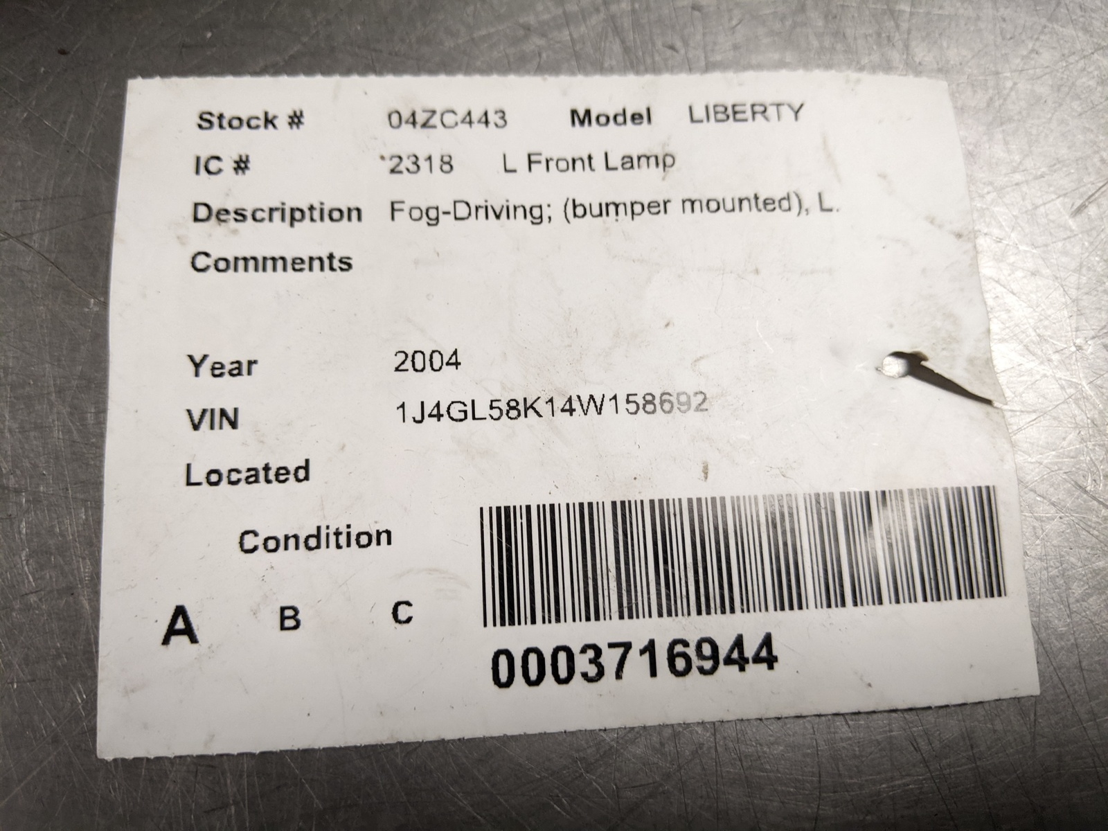 Left Fog Lamp Assembly For 02-04 Jeep Liberty 3.7