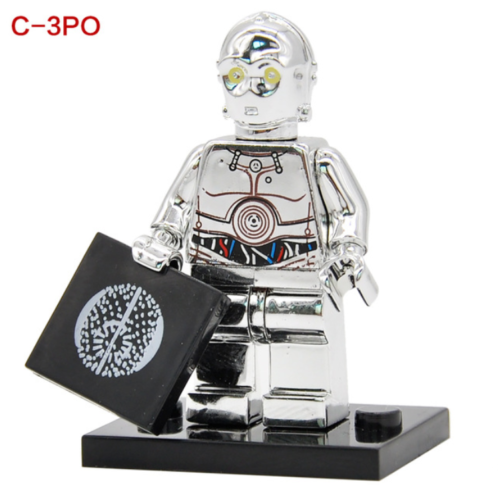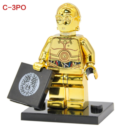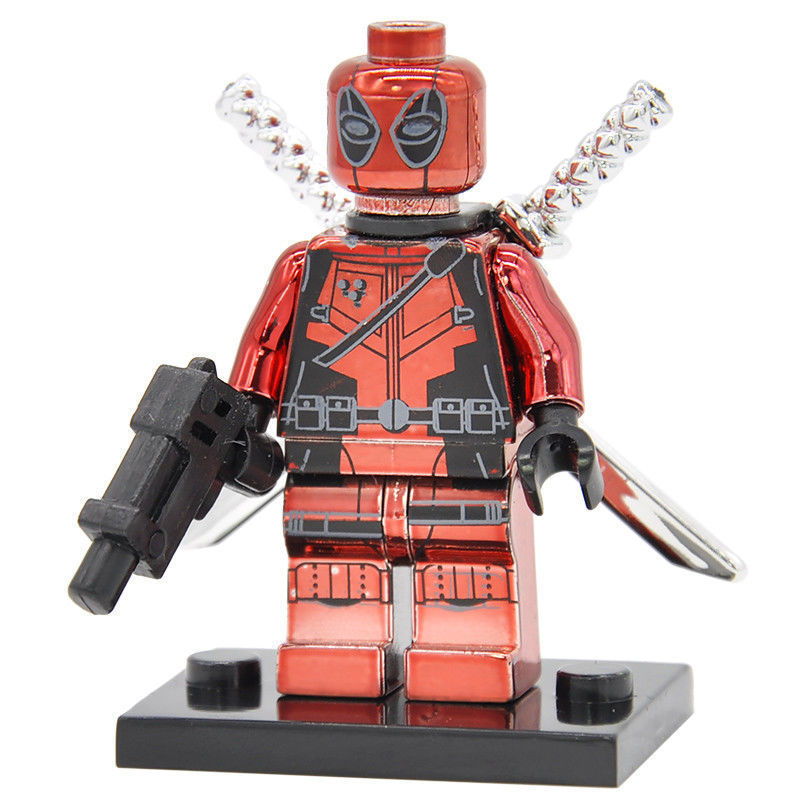 5Pcs Chrome Minifigures Mr Gold Iron Man Spiderman Deadpool C3PO Mini Block Toys