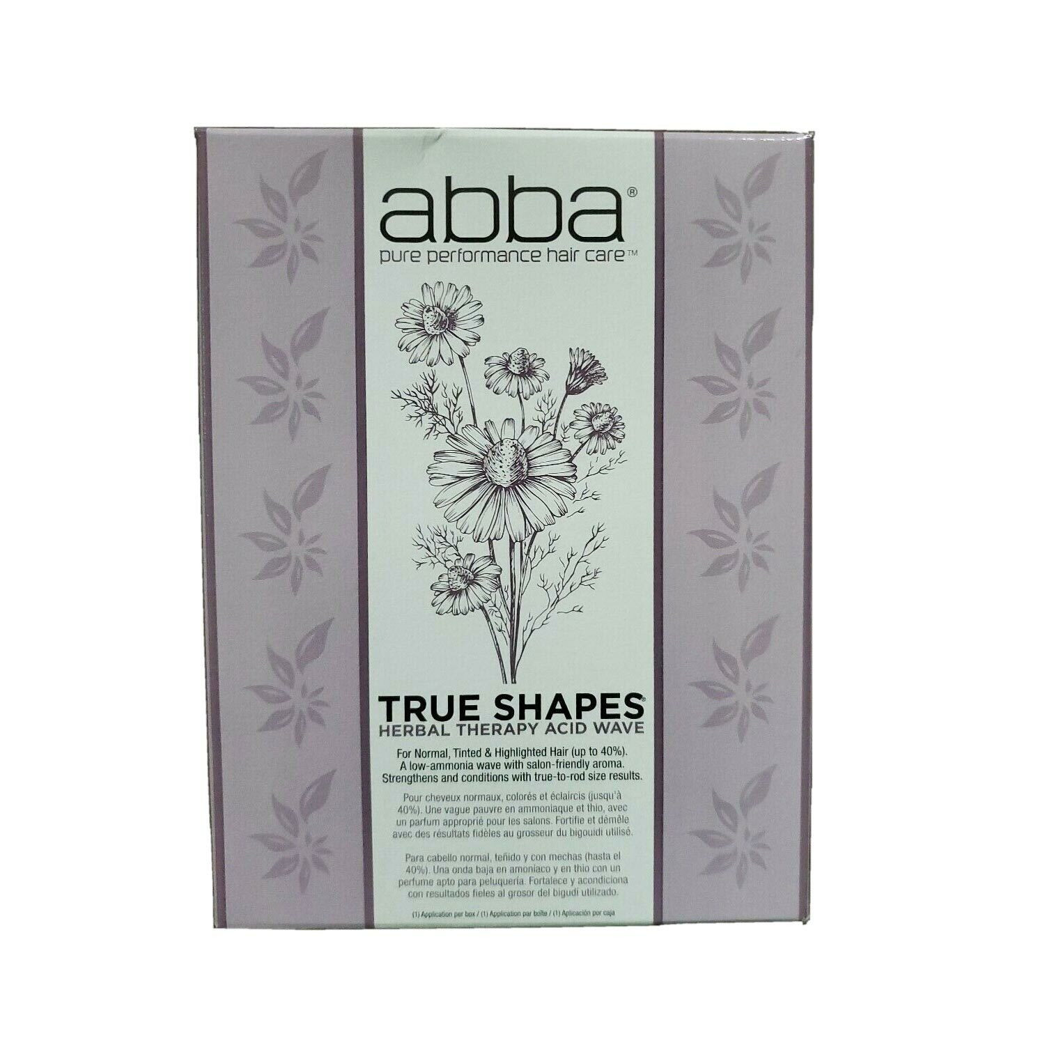 Abba True Shapes Herbal Therapy Acid Wave For Normal, Tinted Highlighted Hair (up to 40%).A low-ammonia, low-thio wave with salon-friendly aroma. Strengthens and conditions with true-to-rod-size results. One complete application contains Wave Lotion, Additive, Neutralizer, Plastic Cap, and Instructions.
