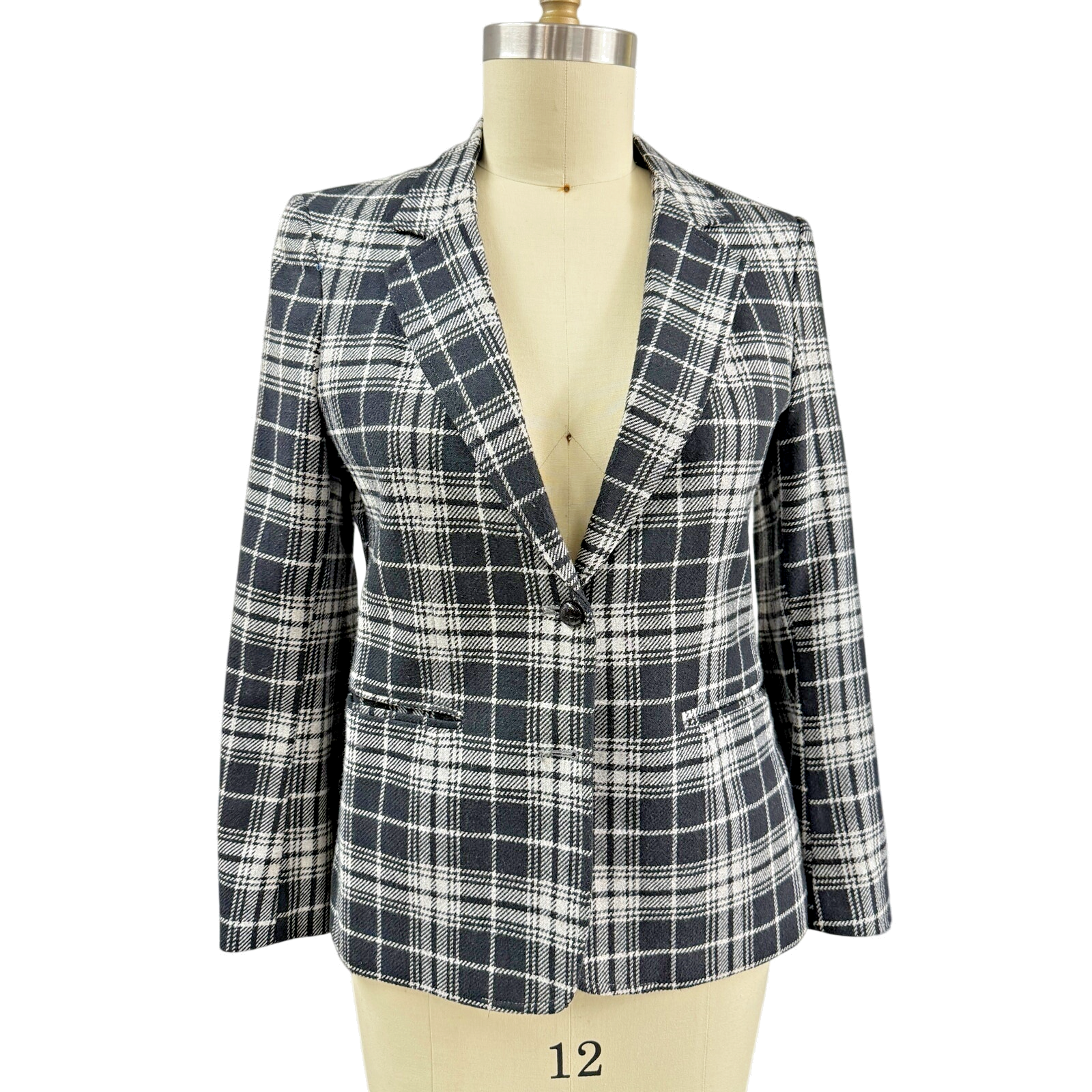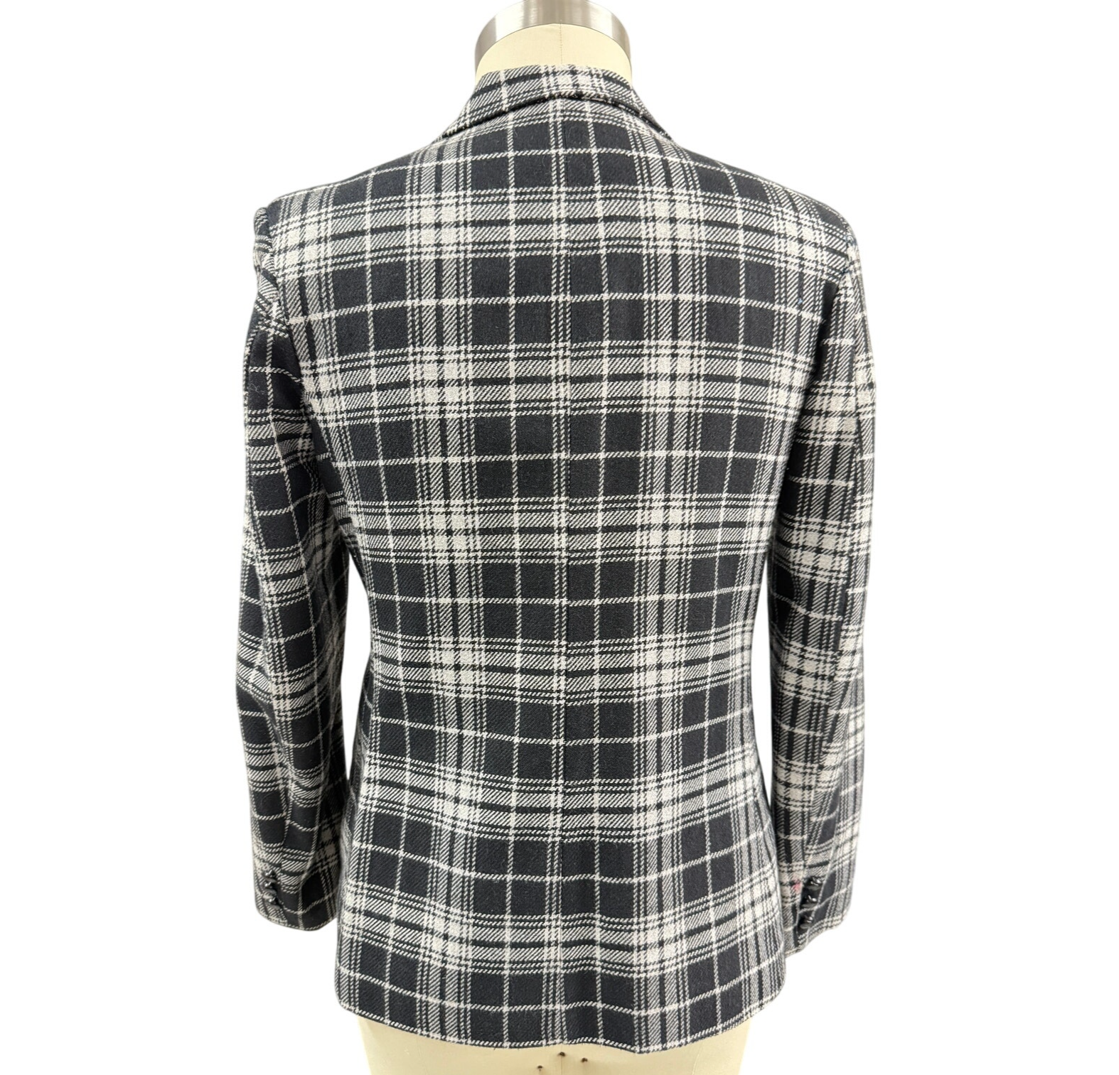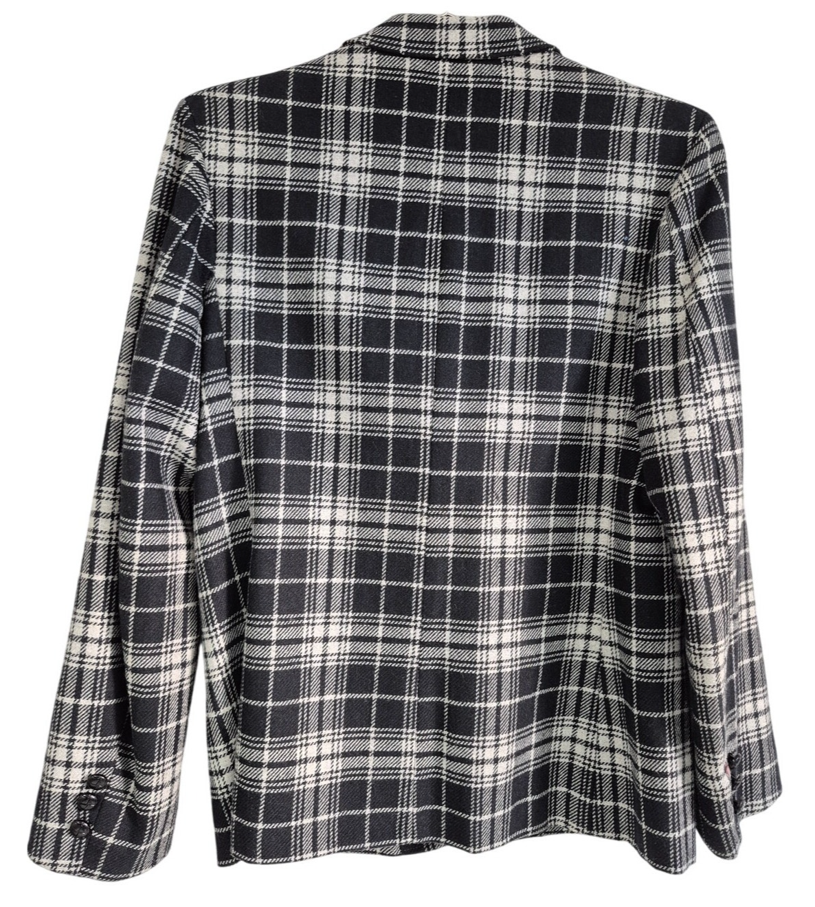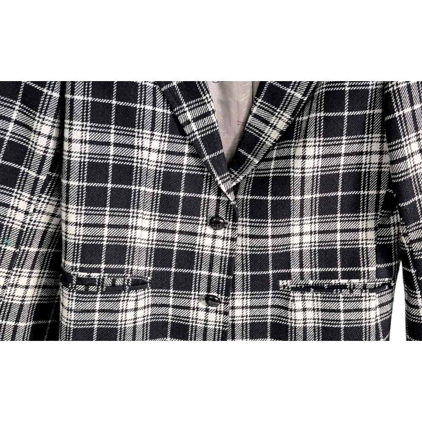 VTG 90s Oscar de la Renta Plaid Wool Blend Blazer Juniors 11/12 Modern 6/8