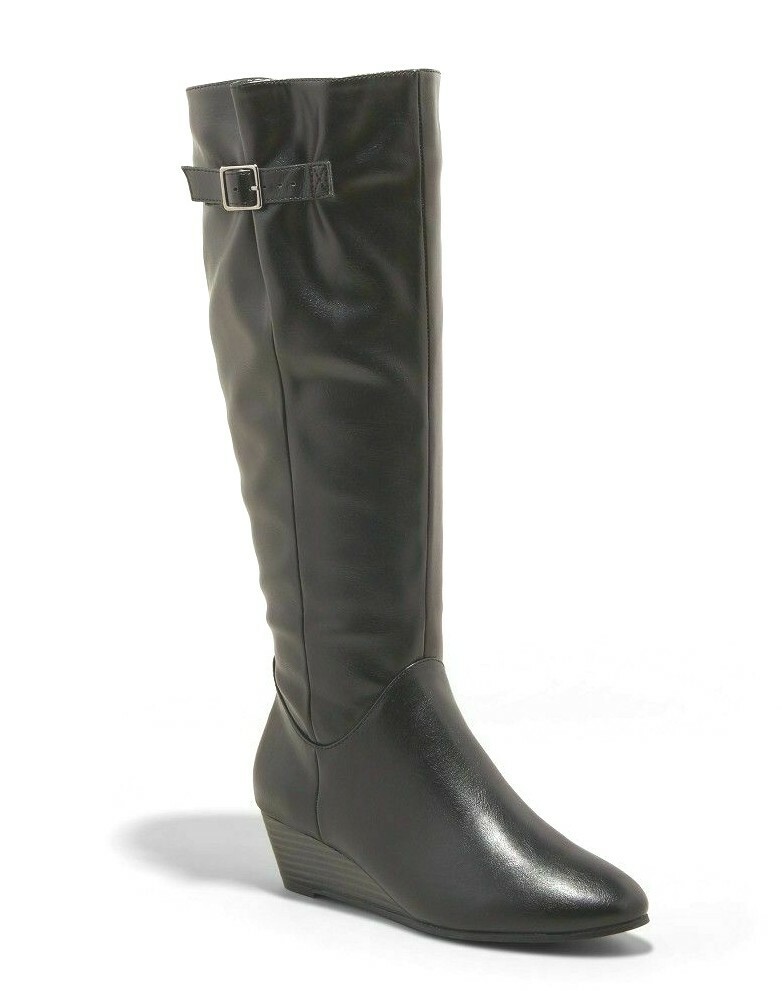 A New Day Black Faux Leather Blinda Women's Tall Wedge Riding Boots