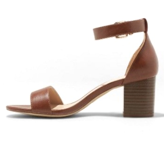 This is for a brand new with tags A New Day Faux Leather Brown Kianta Ankle Strap Mid Block Heels Open Toe Sandal 2.5" block heel Buckle Closure with elastic for comfort Stylish Classic Open Toe Sandal