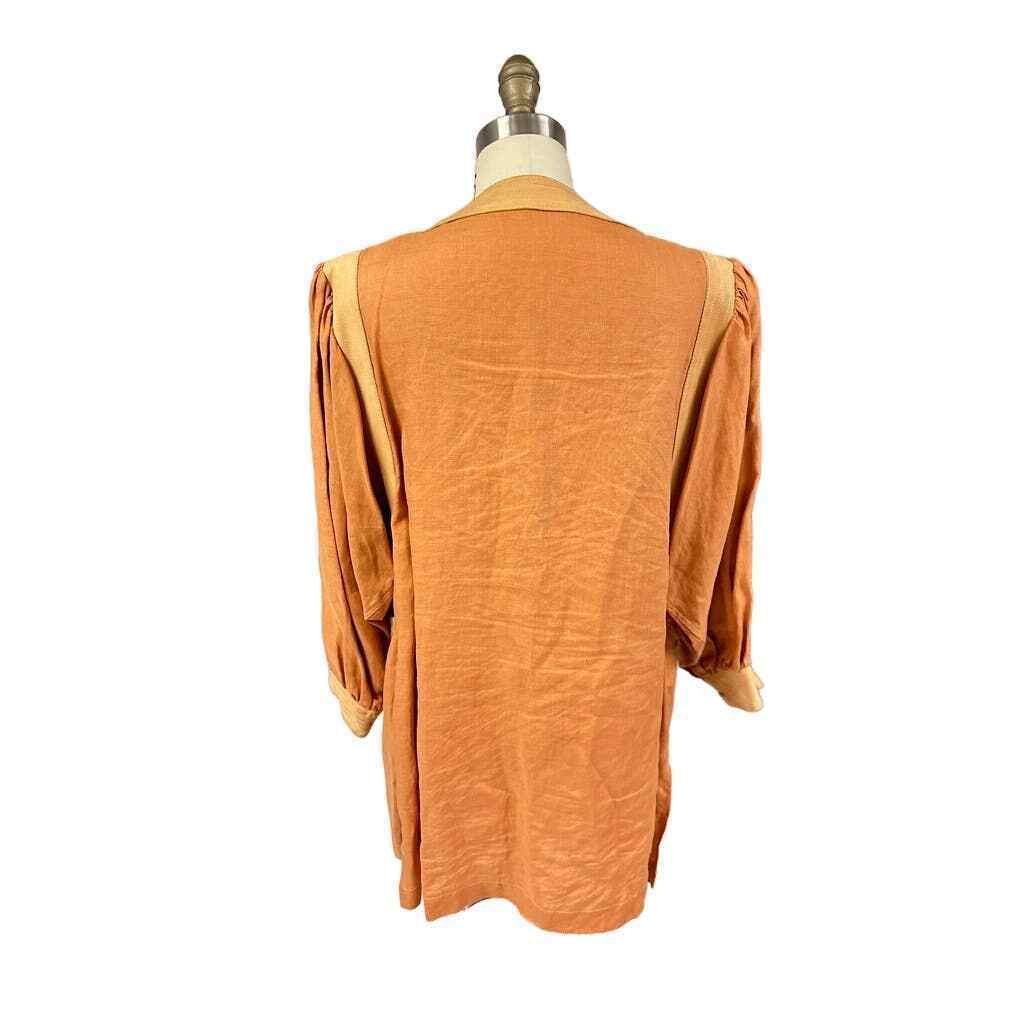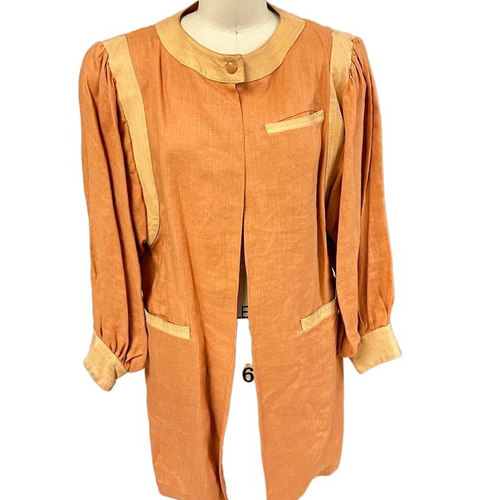 80s VTG Christian Llinares Linen Jacket 2 Tone Peach Sz 36 S/M - BIG Shoulder Pads, One Snap at Collar. Pockets in front.