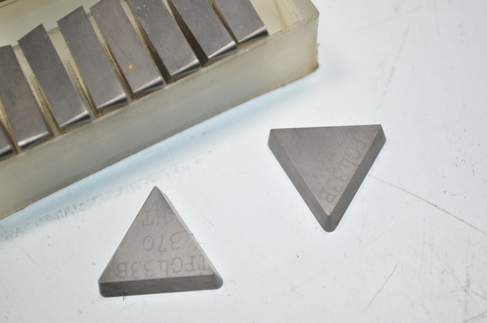 Nouveau lot de 17 Inserts d'index en carbure de Carboloy Vous obtenez: - 6 du TPG (TFG) / 433 Grade = 883 - 11 du TPG-433B / grade = 370 / - 1 du TPG-433 / Grade = G Je ne sais pas exactement quelle marque il s'agit. Cela vient d'un lot de carbure qui etait la valenite et le carboloy. ***Veuillez consulter mes autres lots. J'ai beaucoup d'inserts en carbure et plus nous ajoutons!