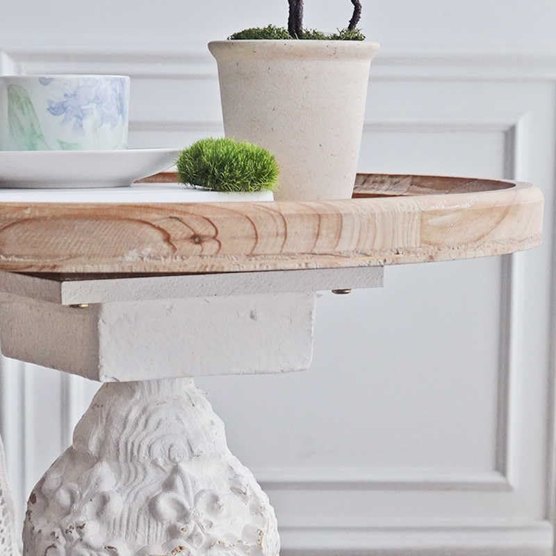 Vintage White Round Side Table, Carved Coffee End Table, Retro Pedestal Accent T
