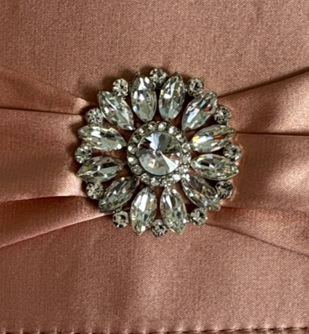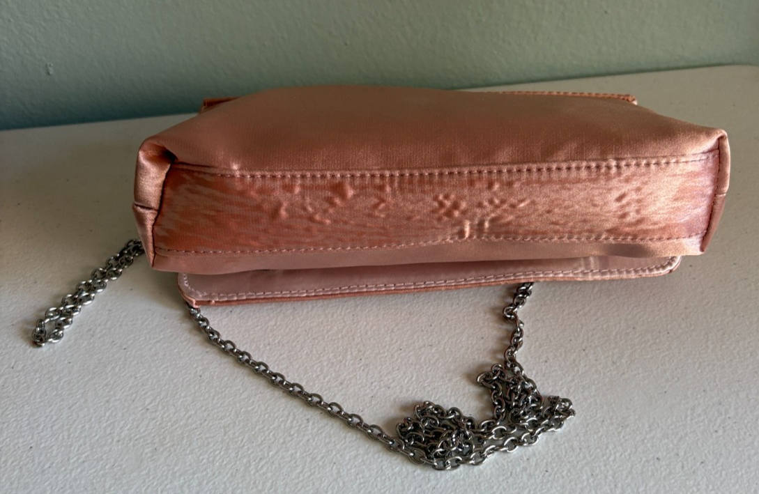 Elegant Charming Taylor Pink Crossbody Bag. This elegant pink crossbody bag is perfect for any occasion. Its sleek design and stylish color make it a must-have accessory. It is 10? wide x 5.5? tall x 1 3/8? deep. Beautiful bling on the front. Magnetic Snap Closure. Good Used Condition - See photos for further description.