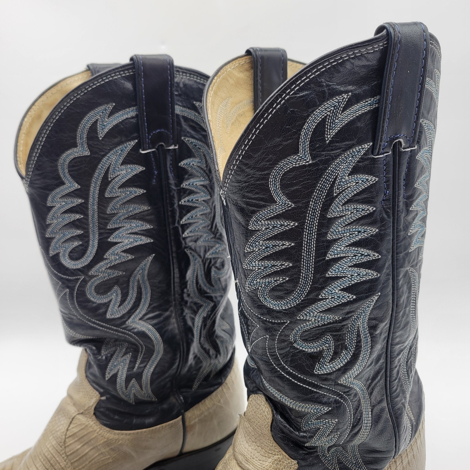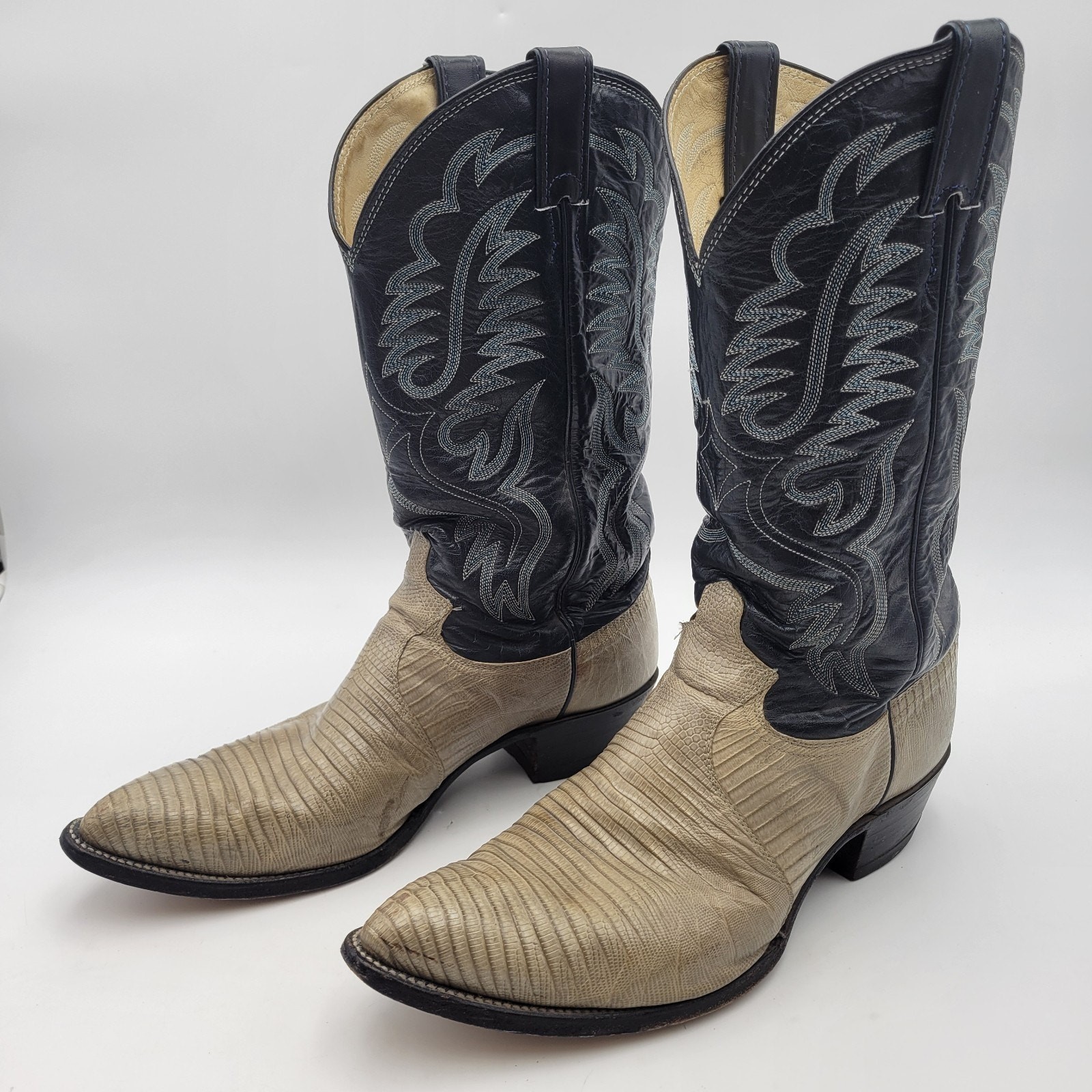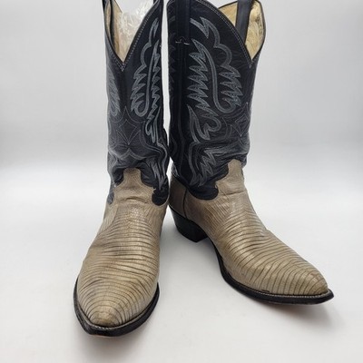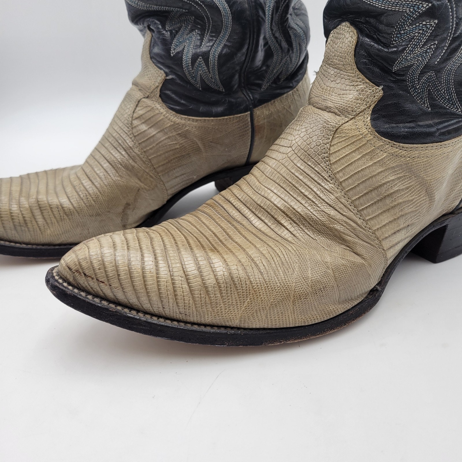 Justin Gray Silver Genuine Real LIZARD Skin Cowboy Western Boots Sz 10.5 EE