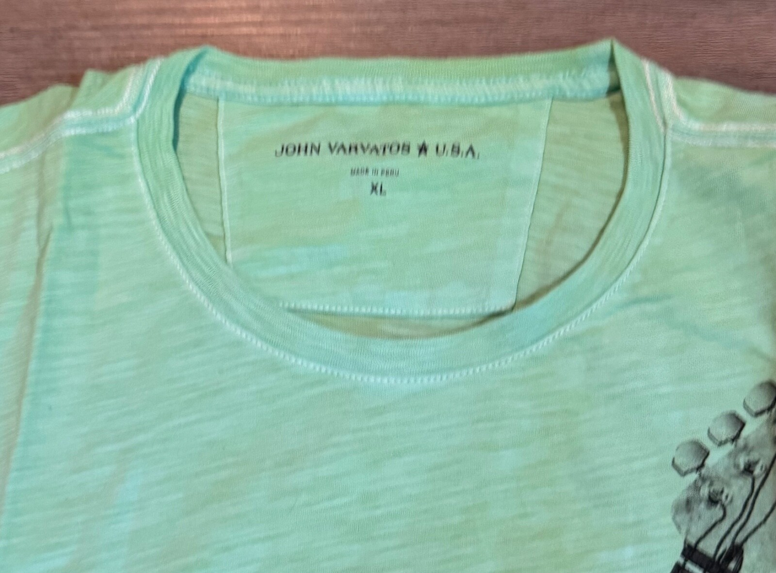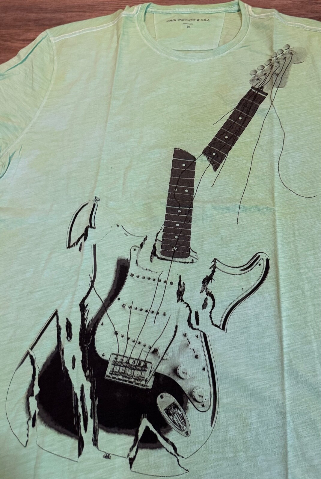 John Varvatos Star USA Men's Stone Wash Green Broken Guitar Graphic T-Shirt XL
