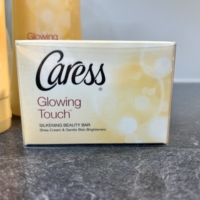 Caress GLOWING TOUCH Silkening Body Wash, In Shower Lotion, Beauty Bar & Puff