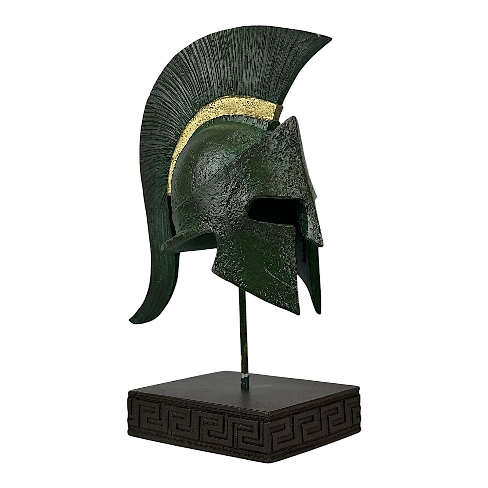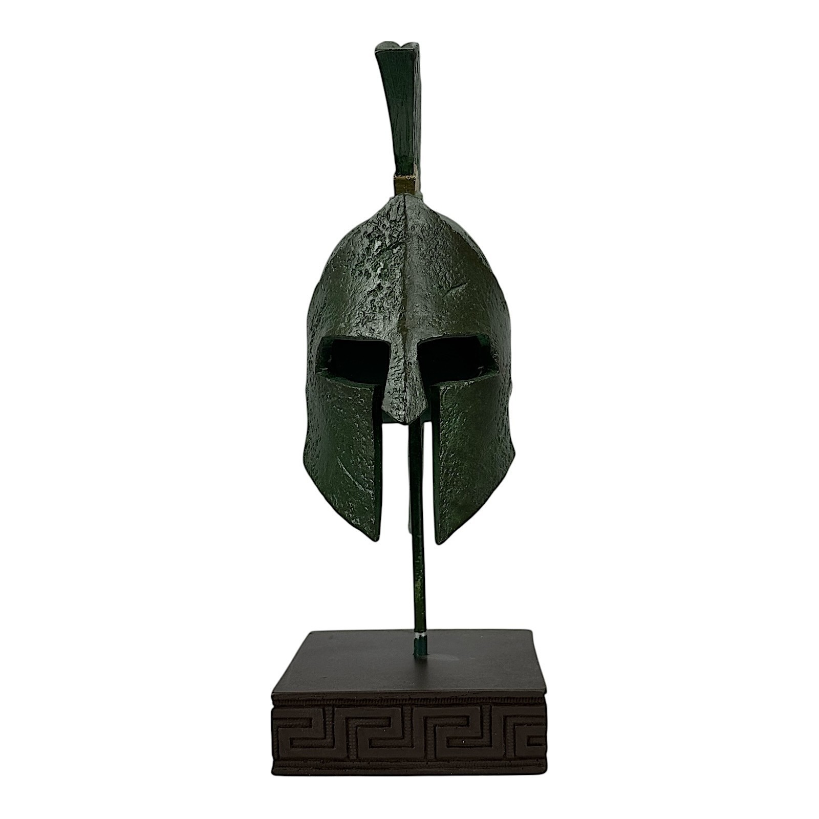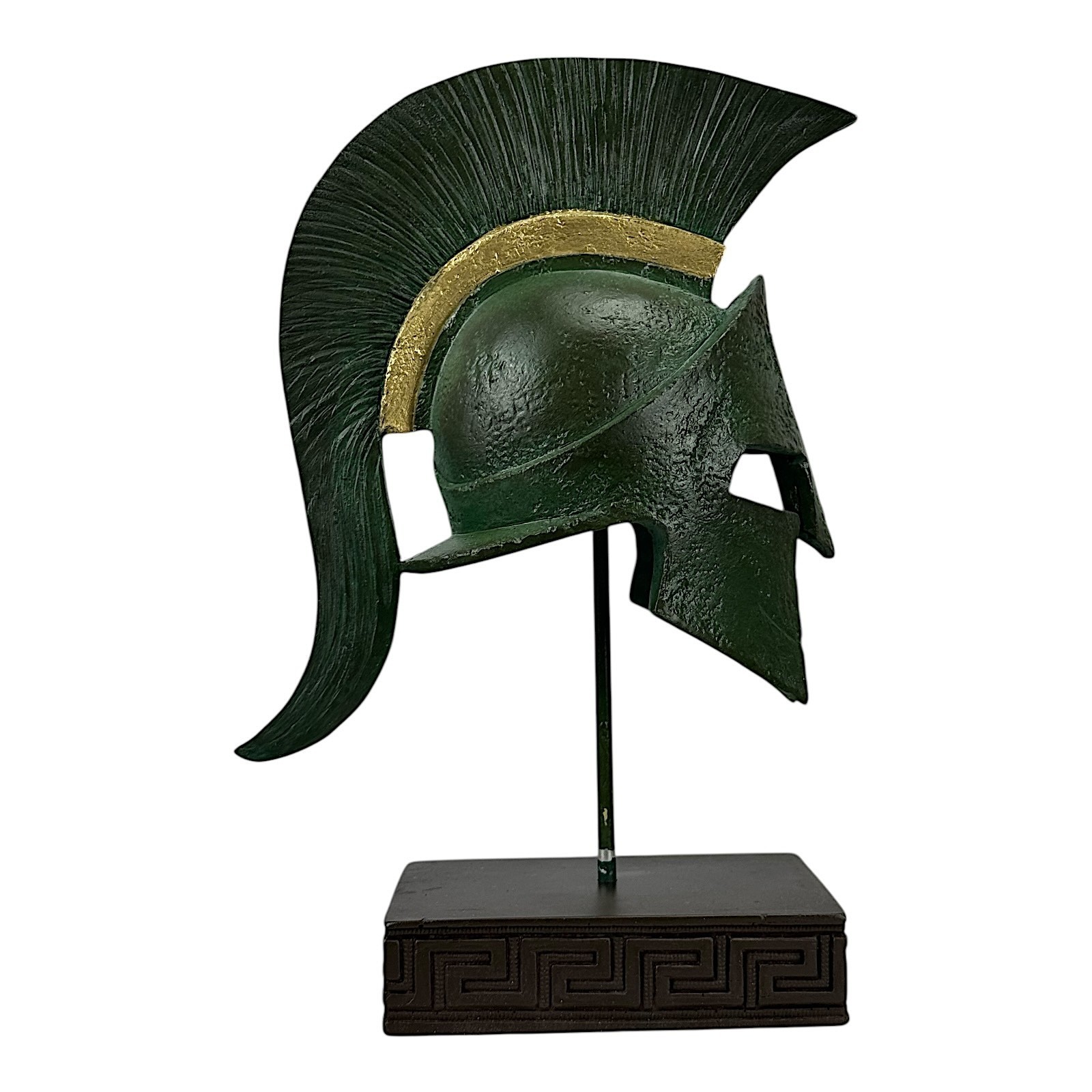 This stunning sculpture depicts the iconic Spartan helmet of King Leonidas in an antiqued green patina effect, embodying the valor and warrior spirit of ancient Greece.