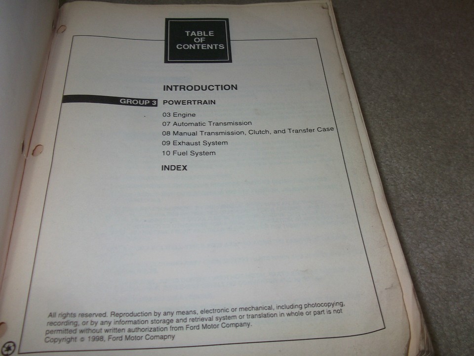 Full of information and illustrations, step by step instructions, assembly/disassembly, exploded illustrations/diagrams/troubleshooting, great manual to have when owning a FORD and will keep your TRUCK on the road. This manual will save you money in repairs/service.