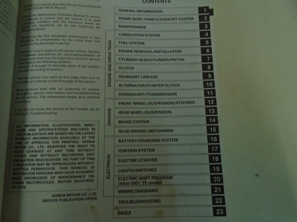1997-2003 Honda TRX250TE/TM Recon Fourtrax Service Manual