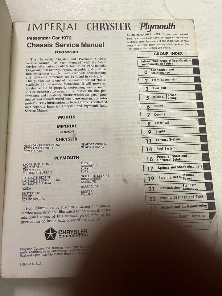 Factory 1972 Chrysler/Plymouth/Imperial Chassis Service Manual