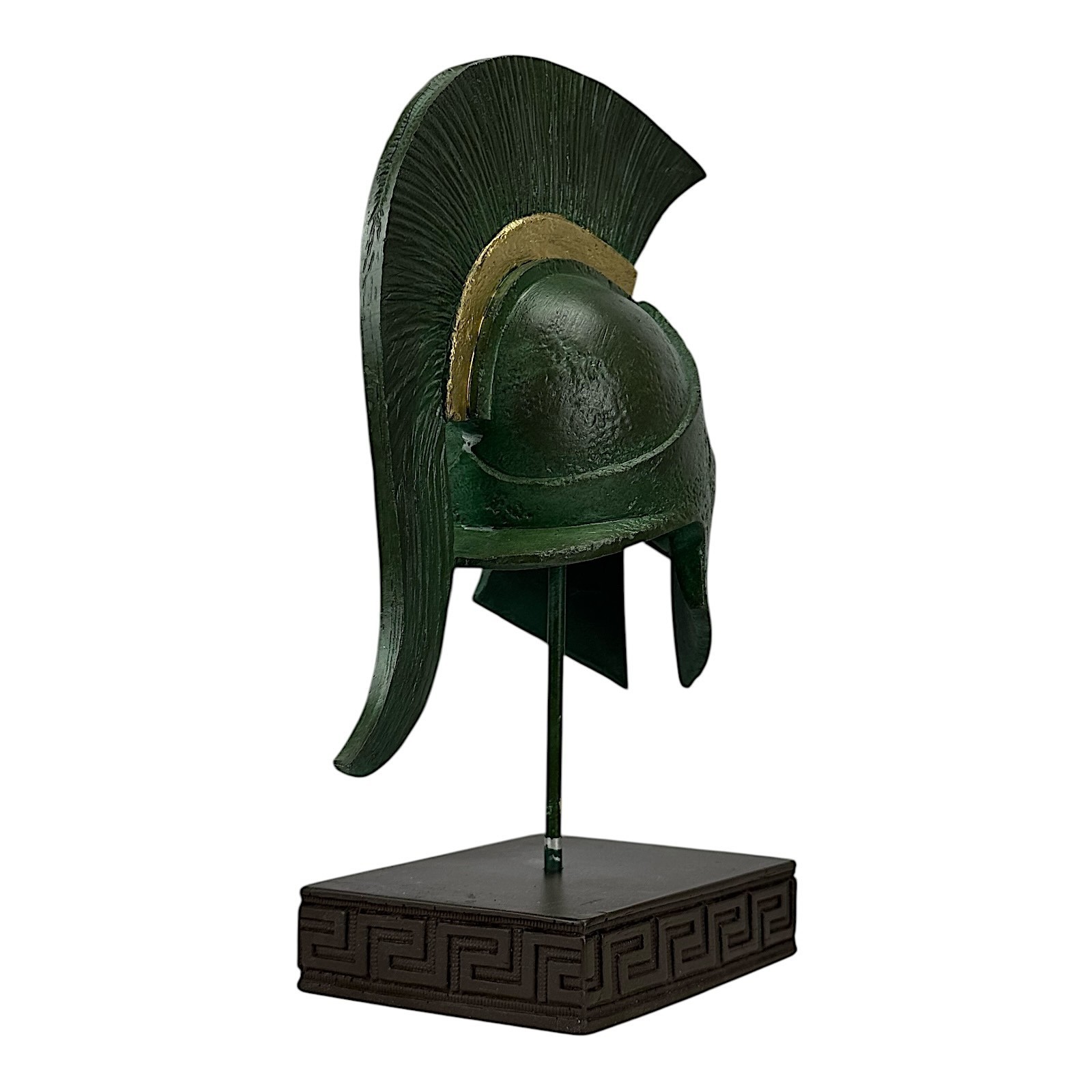 Esta impresionante escultura representa el iconico Casco espartano del rey Leonidas en un efecto de patina verde envejecido, que encarna el valor y el espíritu guerrero de la antigua Grecia.