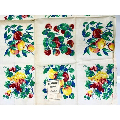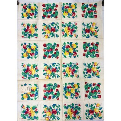 VINTAGE Kitchen TABLECLOTH 1940'S 36x50 DeadStock Sanford Fruit Peaches