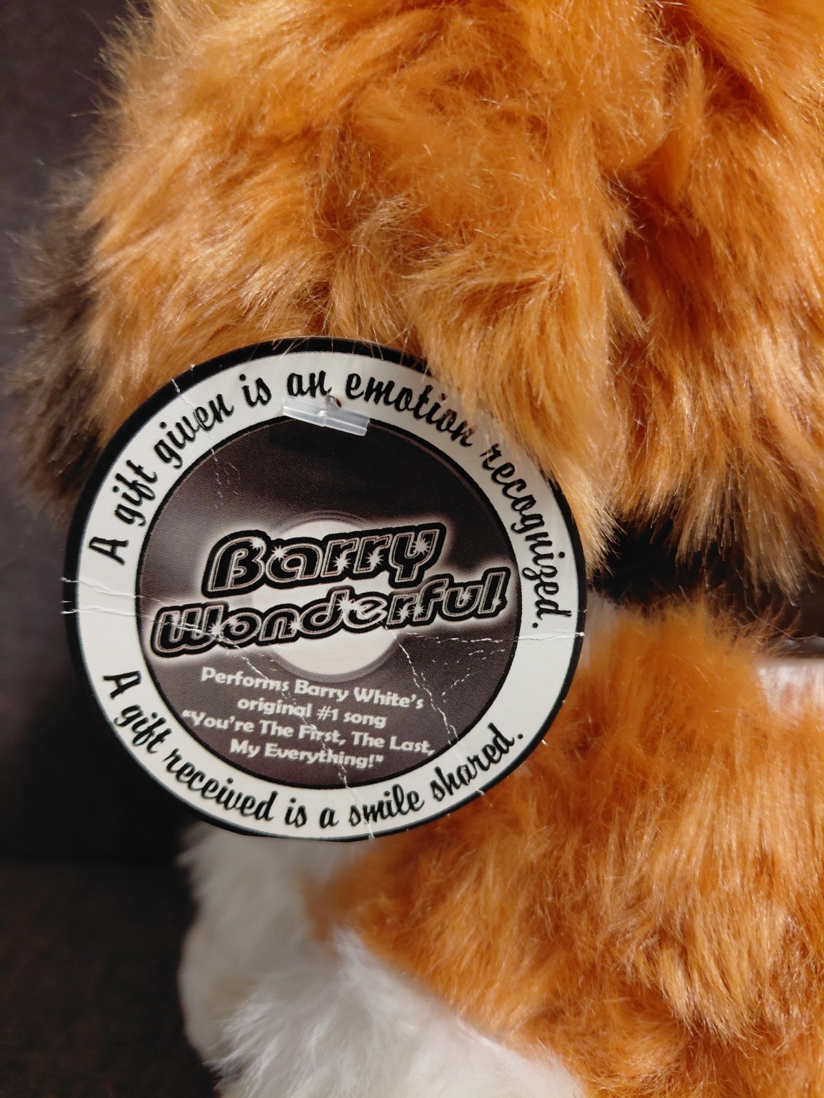 Whether as a gift for young children or as a fun collectible for older kids, this Barry Wonderfull plush dog is sure to be a hit with its Barry White-inspired singing talents.