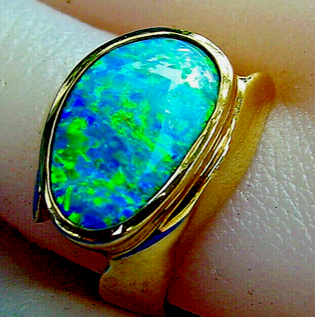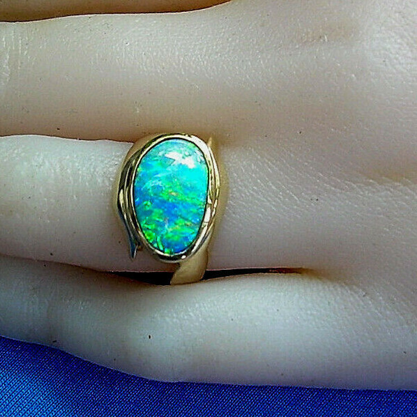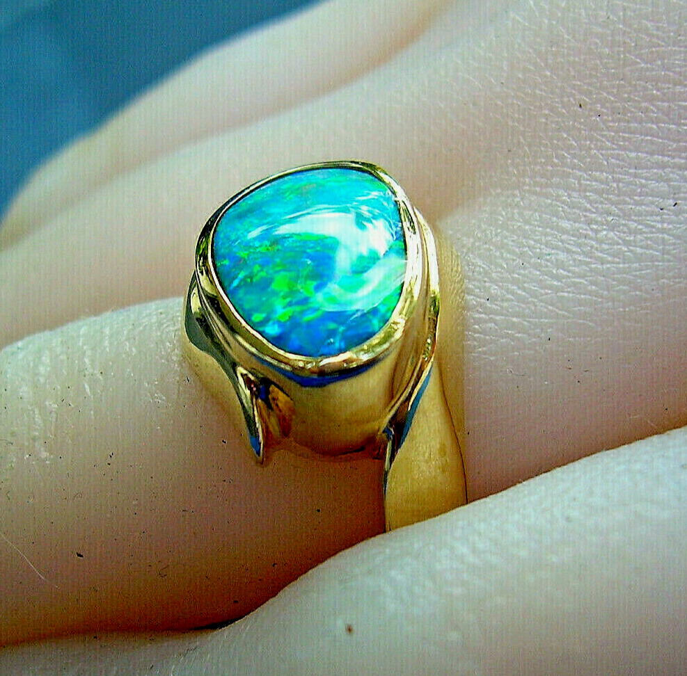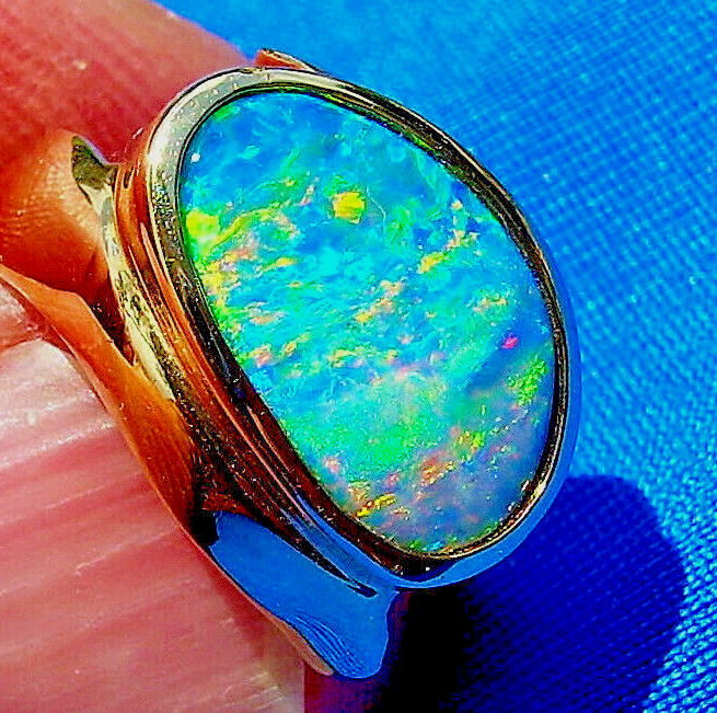 SOLID AUSTRALIAN BLACK BOULDER OPAL STATEMENT RING 14K.