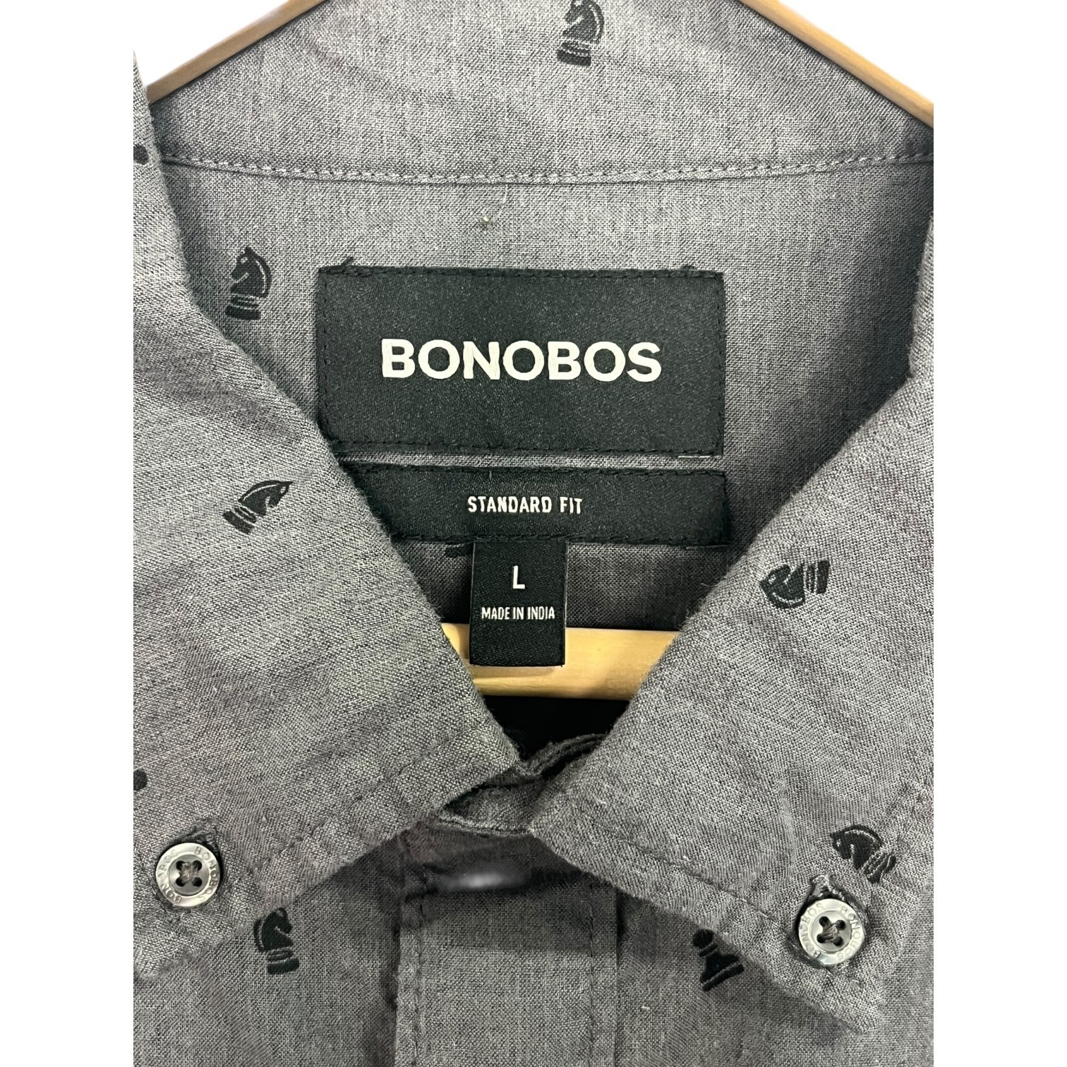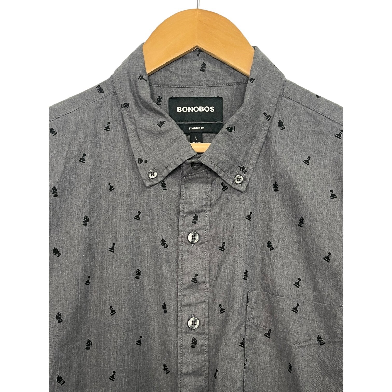 Bonobos Dress Shirt Mens Large Gray Button Down Chess Print Cotton Preppy Modern