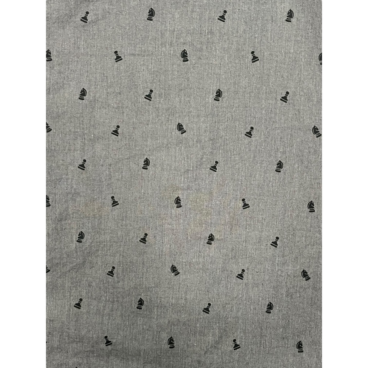 Bonobos men's long sleeve button front dress shirt in gray with an allover black chess piece print. Features a button down collar, front chest pocket, and standard fit. Crafted from a soft cotton blend with slight stretch for comfort. Made in India. Style offers a casual yet polished look perfect for work, date nights, or everyday wear.