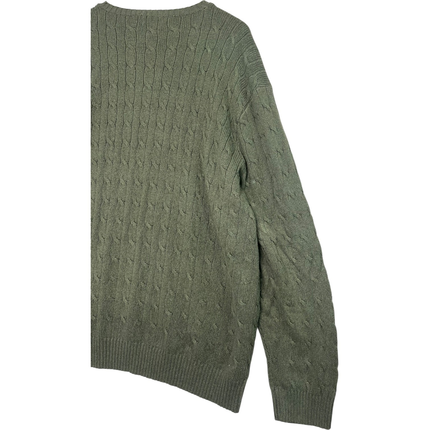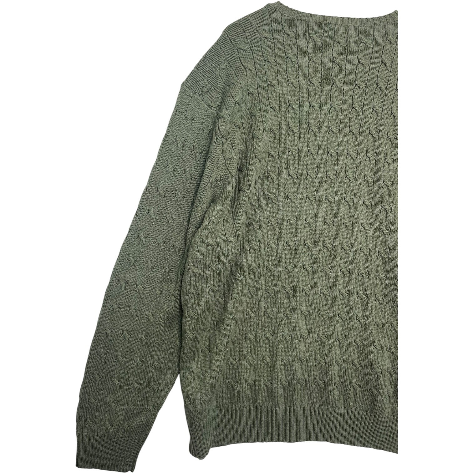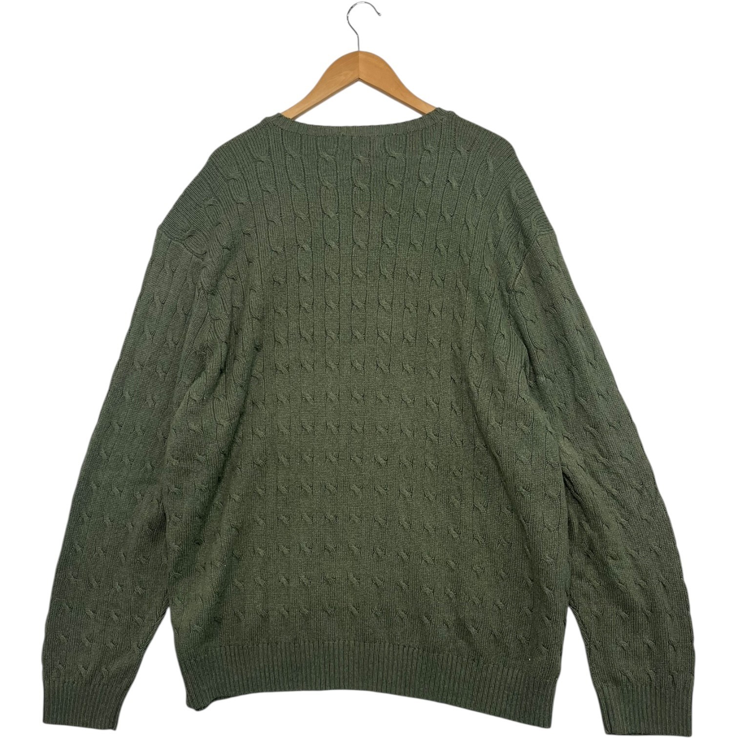 Polo Ralph Lauren Sweater Mens 5XB Green Silk Cable Knit Crewneck Preppy Classic