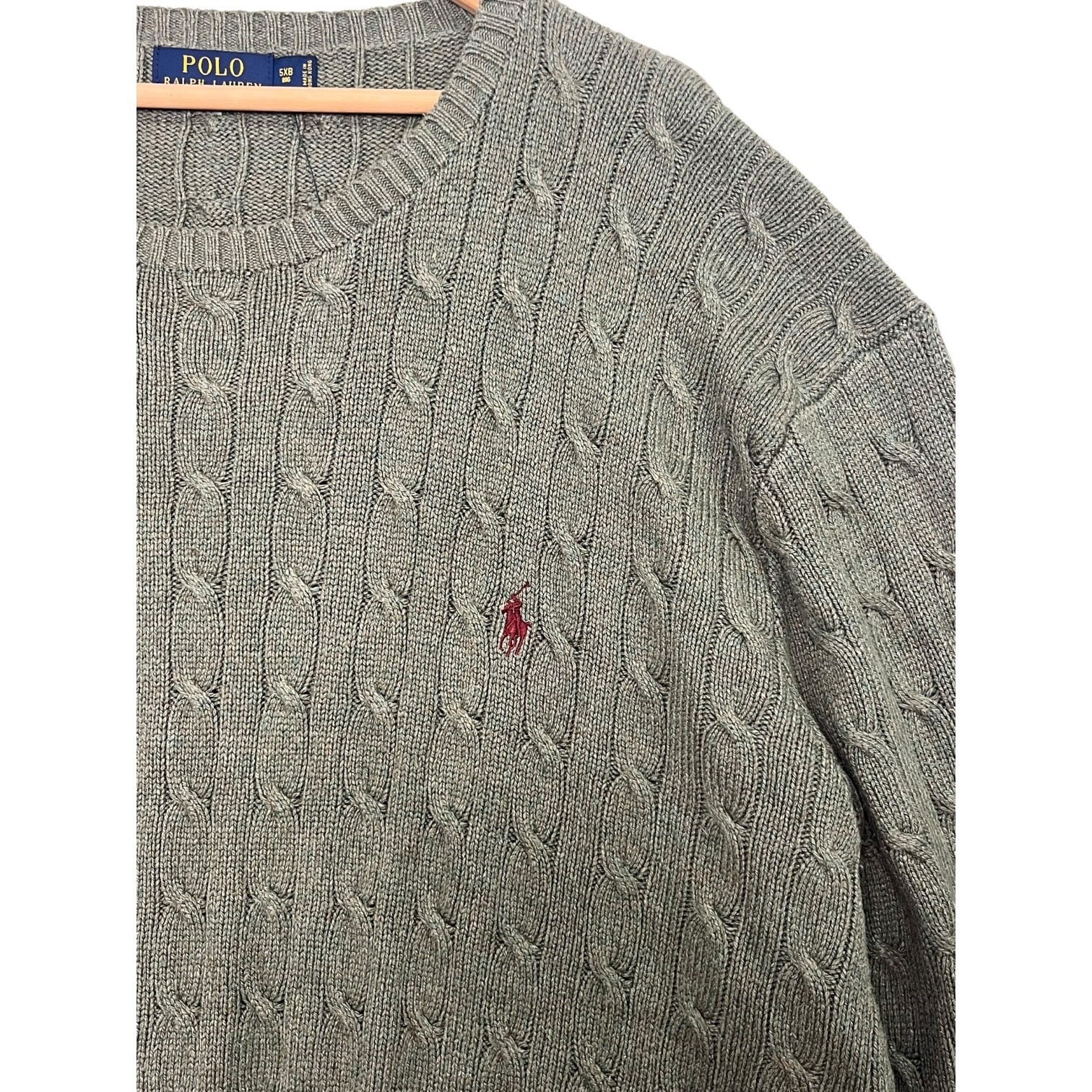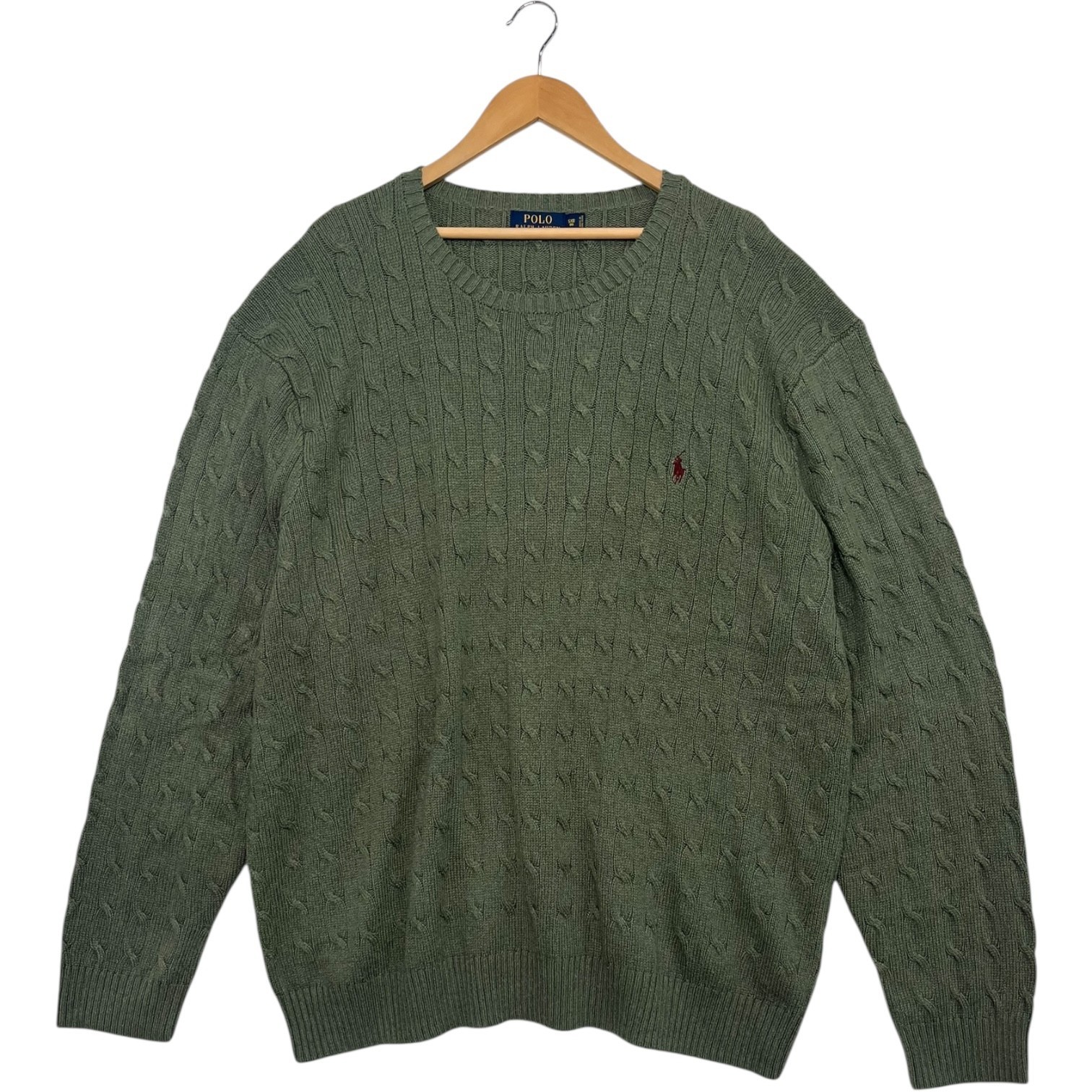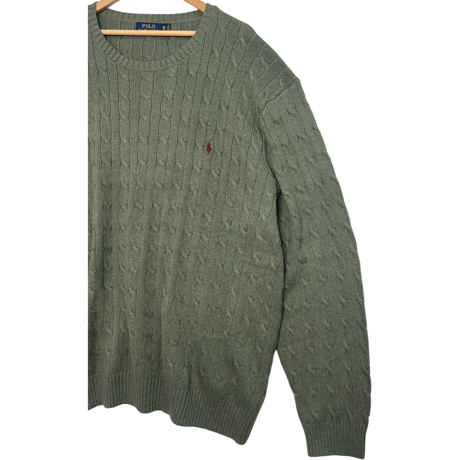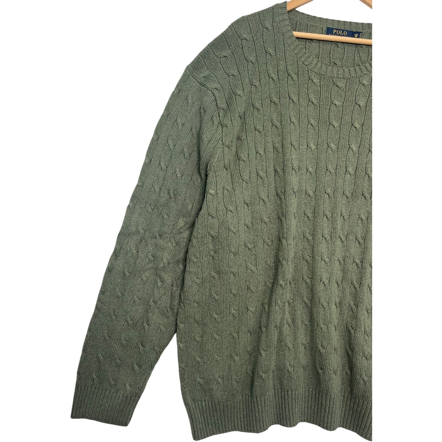 Polo Ralph Lauren Sweater Mens 5XB Green Silk Cable Knit Crewneck Preppy Classic