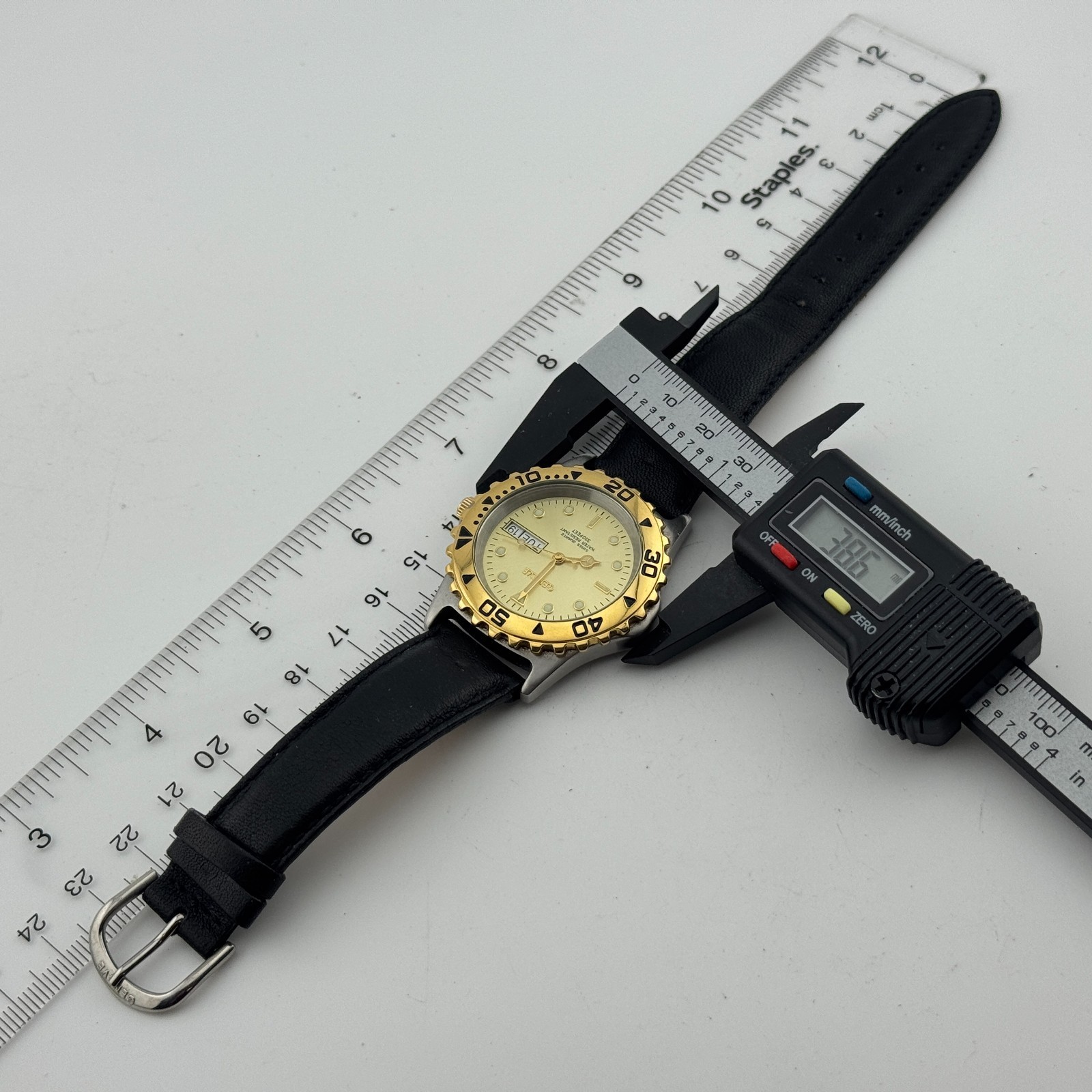 VTG Geneve Swiss Quartz Watch Men 100m Dual Tone Steel Rotating Bezel New Batter