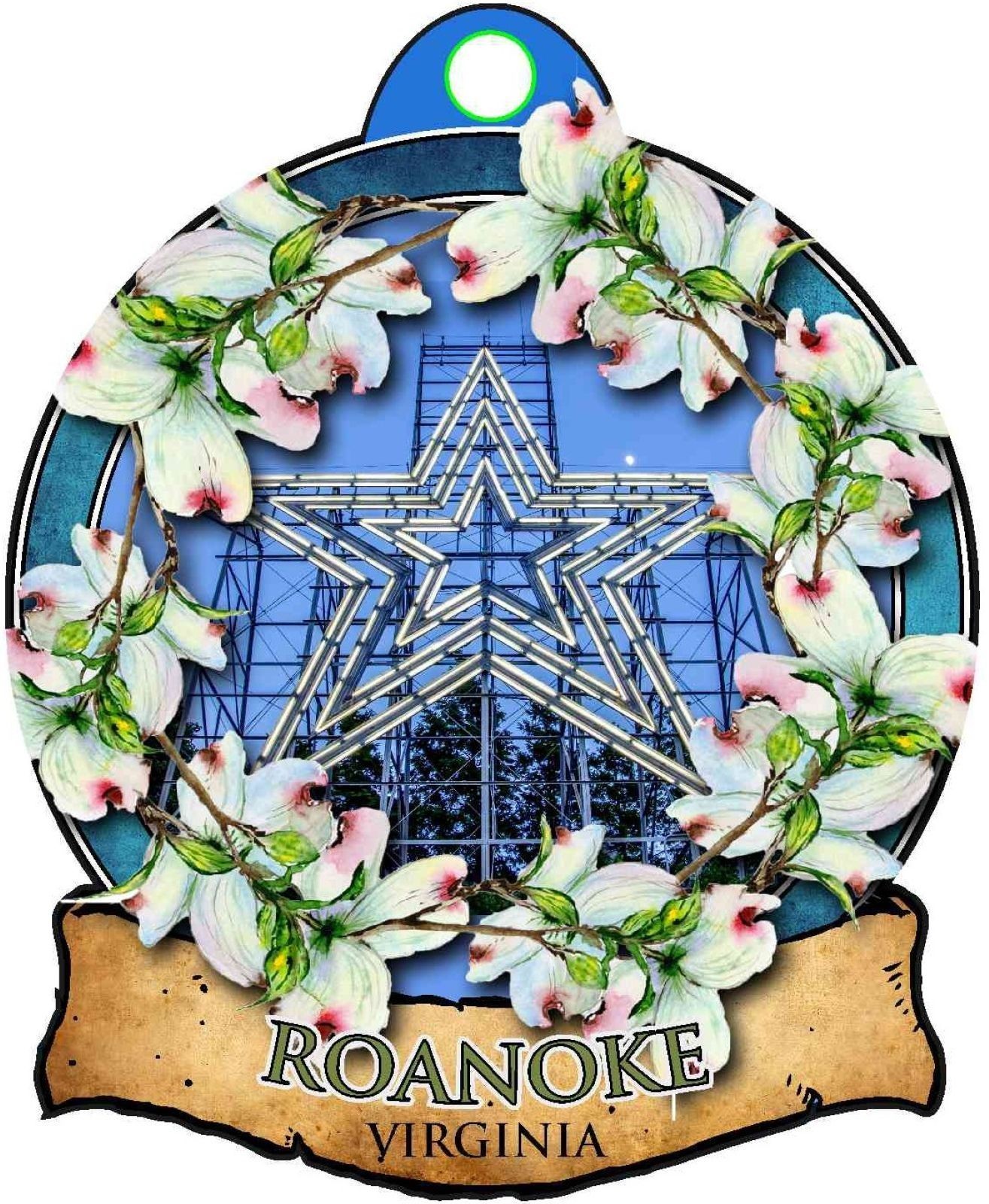 Roanoke Virginia with Big Star and Dogwood Flower Christmas Tree Ornament