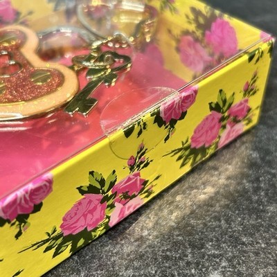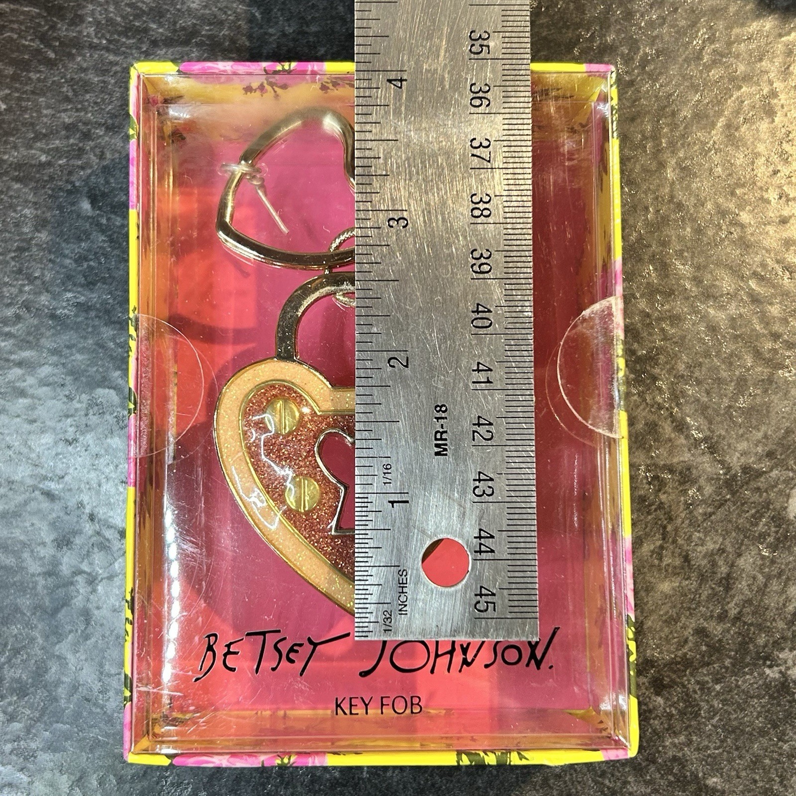Vtg Betsey Johnson Y2K Pink Glitter Enamel Heart Lock Gold Tone Key Fob NEW