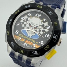 Japan Quartz Watch Men Skull Dial Rotating Bezel Plastic Rubber Band New Battery
