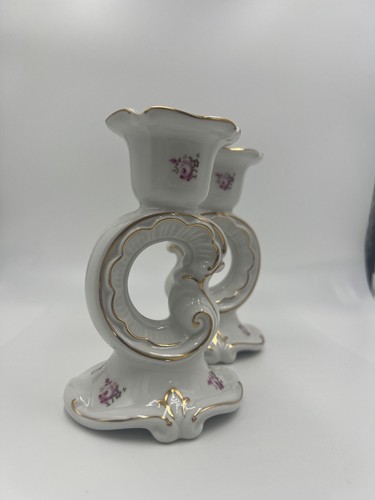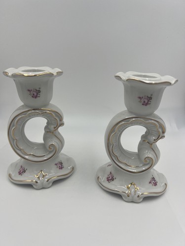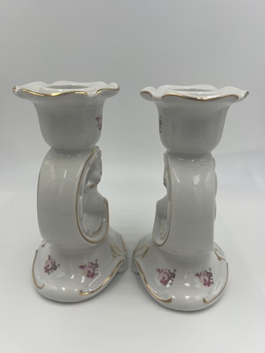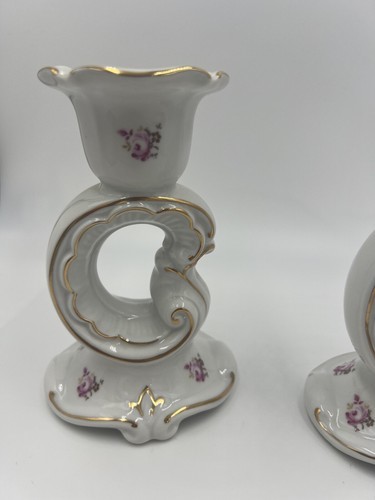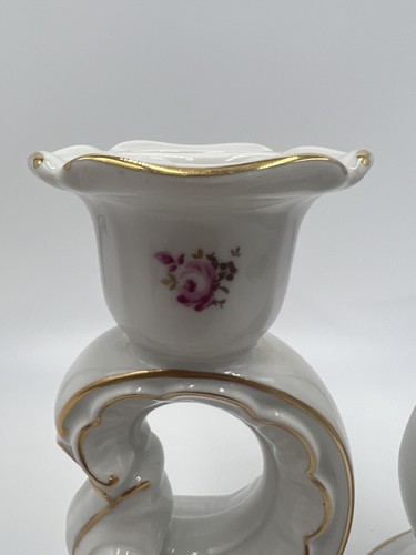 Weimar Candle Holders Porcelain Floral Gold Trim Germany Vintage Set of 2