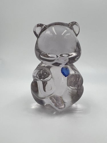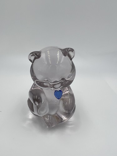 Fenton Glass Bear Figurine Pink Art Blue Heart Collectible USA Retired