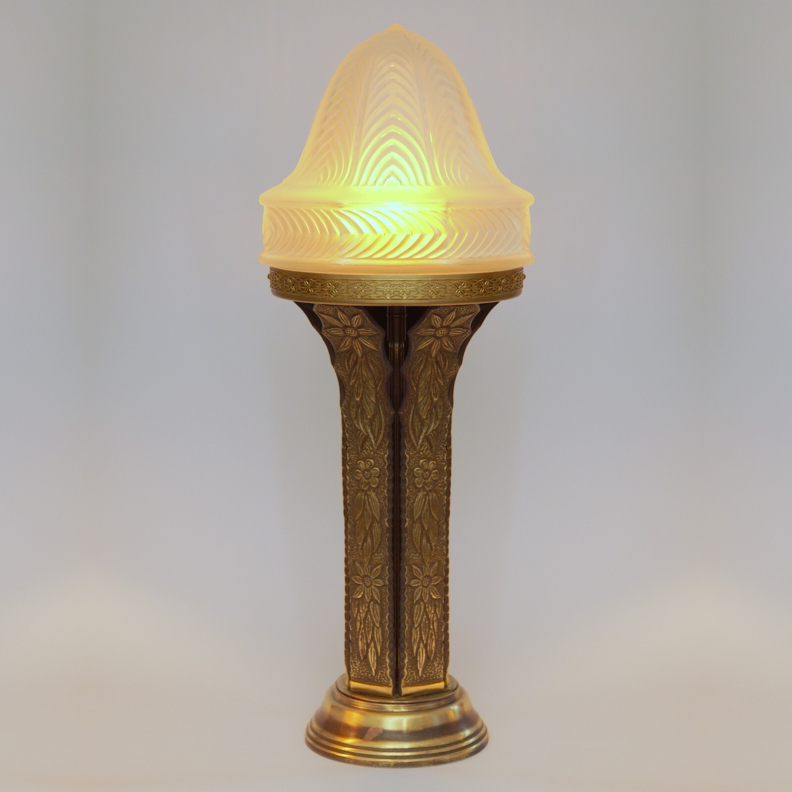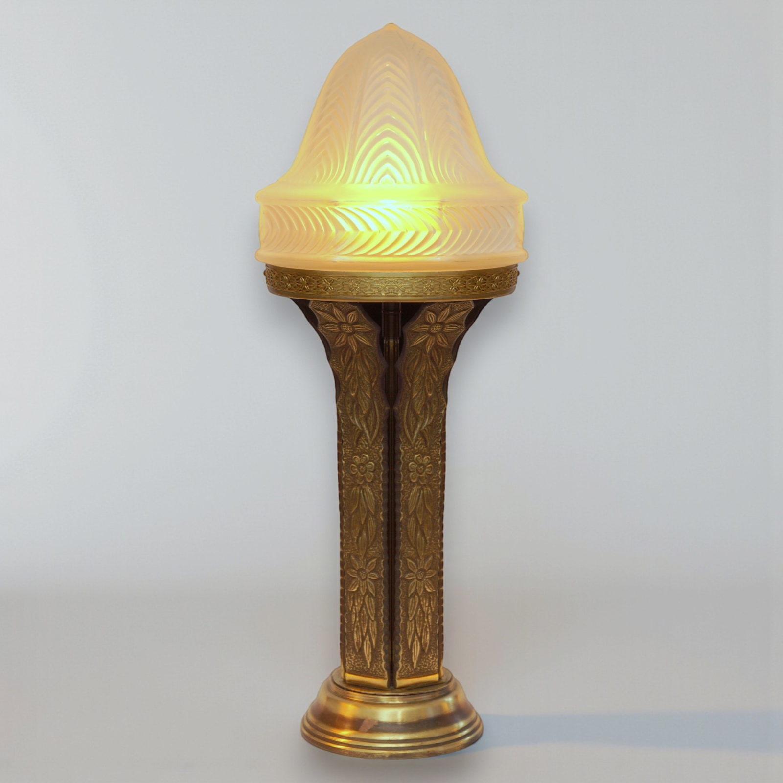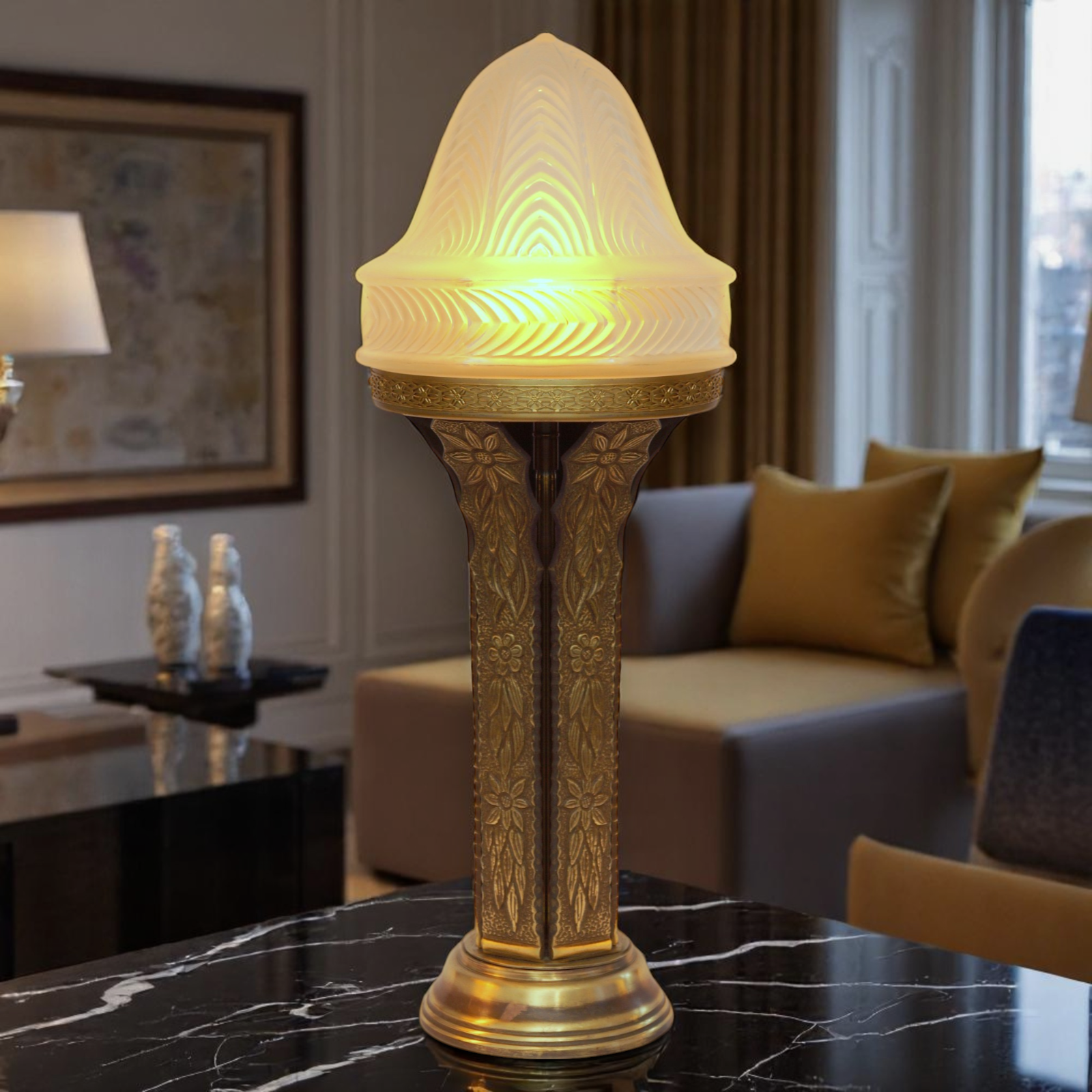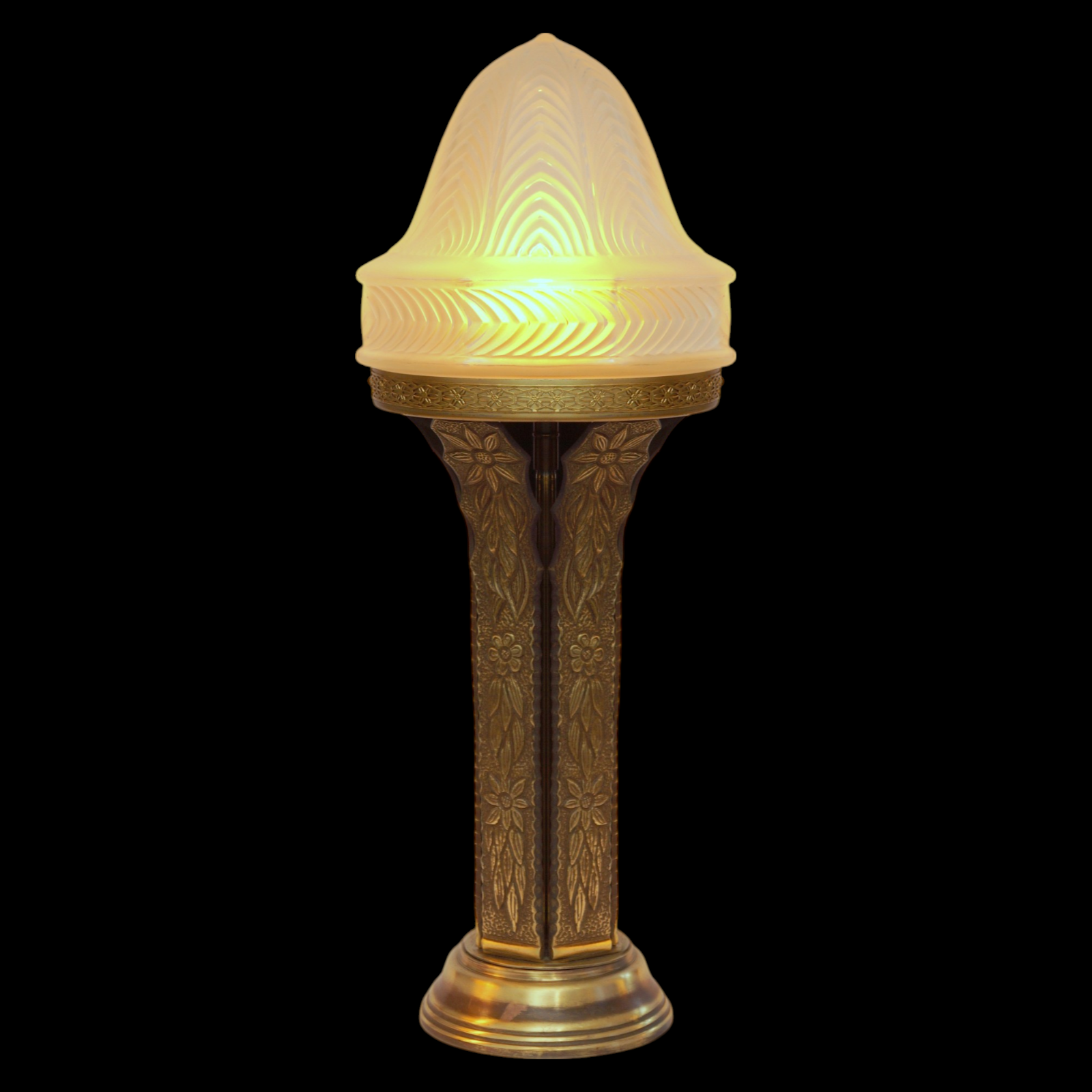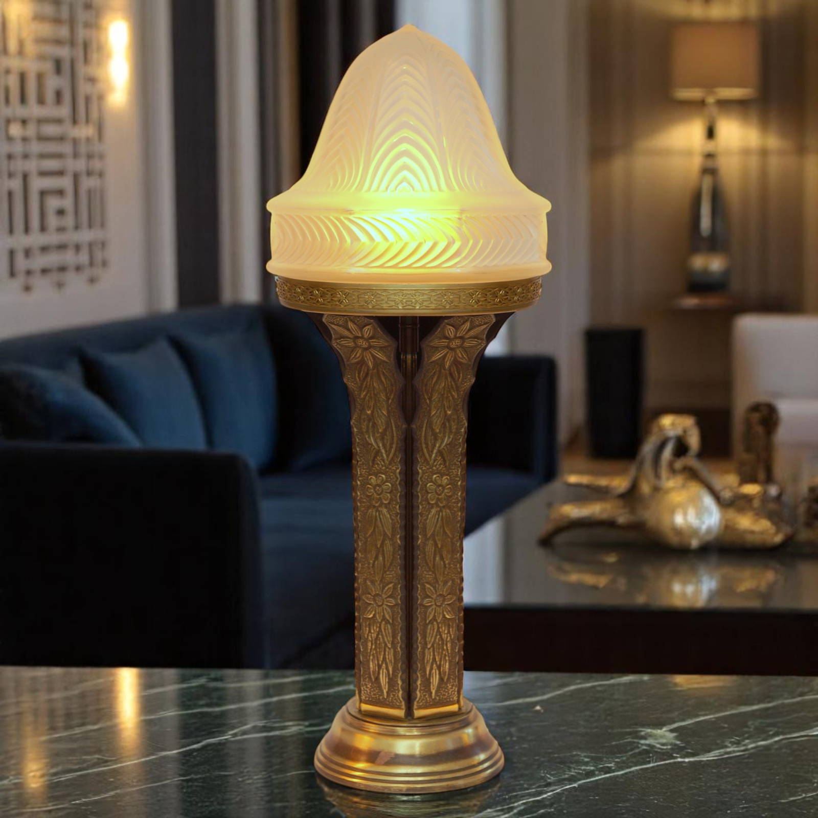Classic Art Deco Skyscraper glass with a geometric pattern, unique Lighting effect.