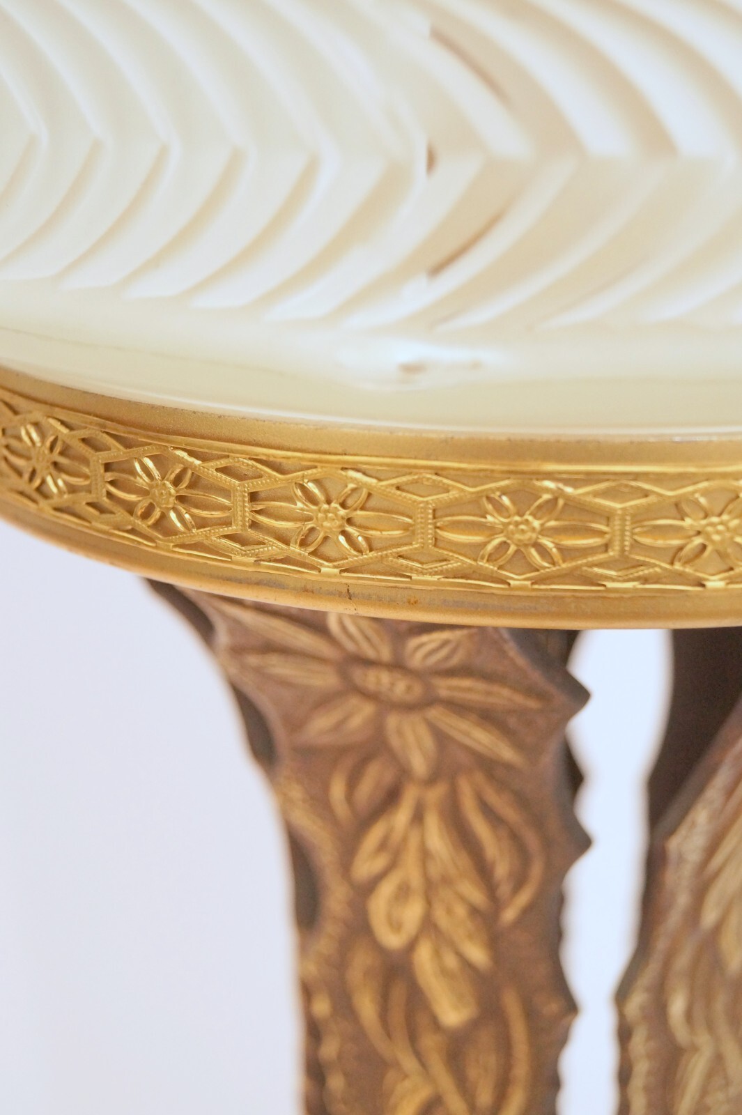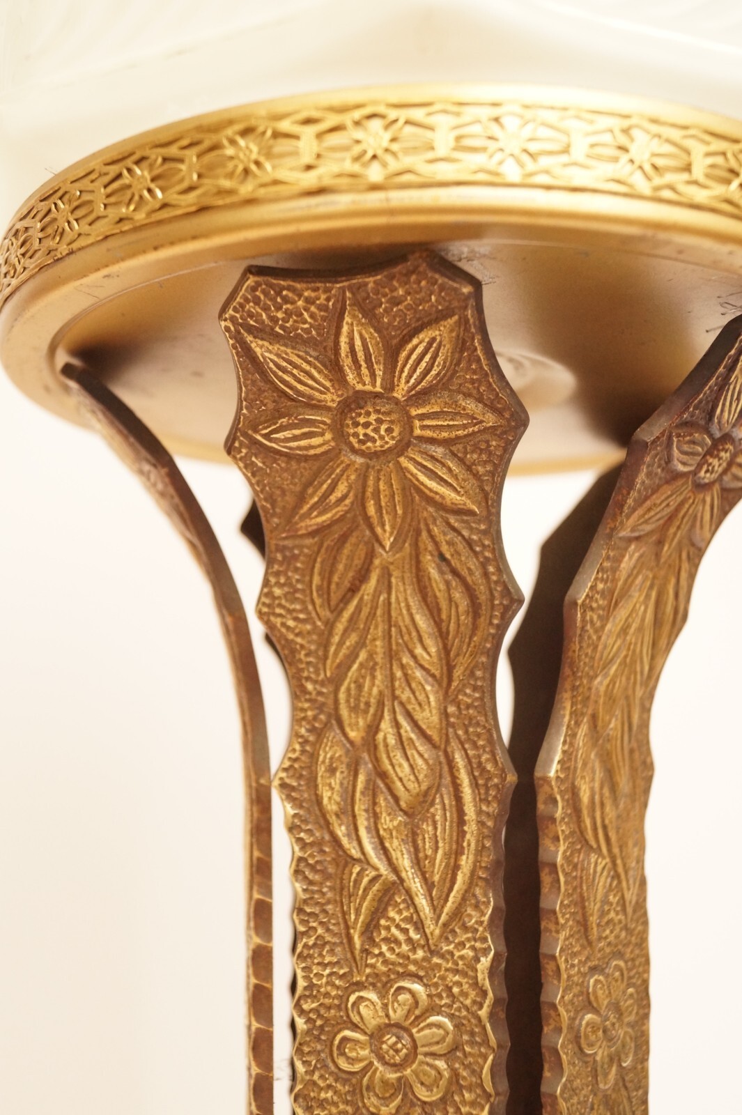 Important: We recommend using only LED lamps (filament bul!) For each of our lights. In addition to that of up to 12 times higher efficiency, the very low heat development of an LED bulb ensures the lifespan of the electrical system and the precious original glasses of its lamp. LED lamps available everywhere or here . Also suitable for LED/energy-saving bulbs with higher light output. Sale without decoration and lamp! Further Art Nouveau lights in our shop.