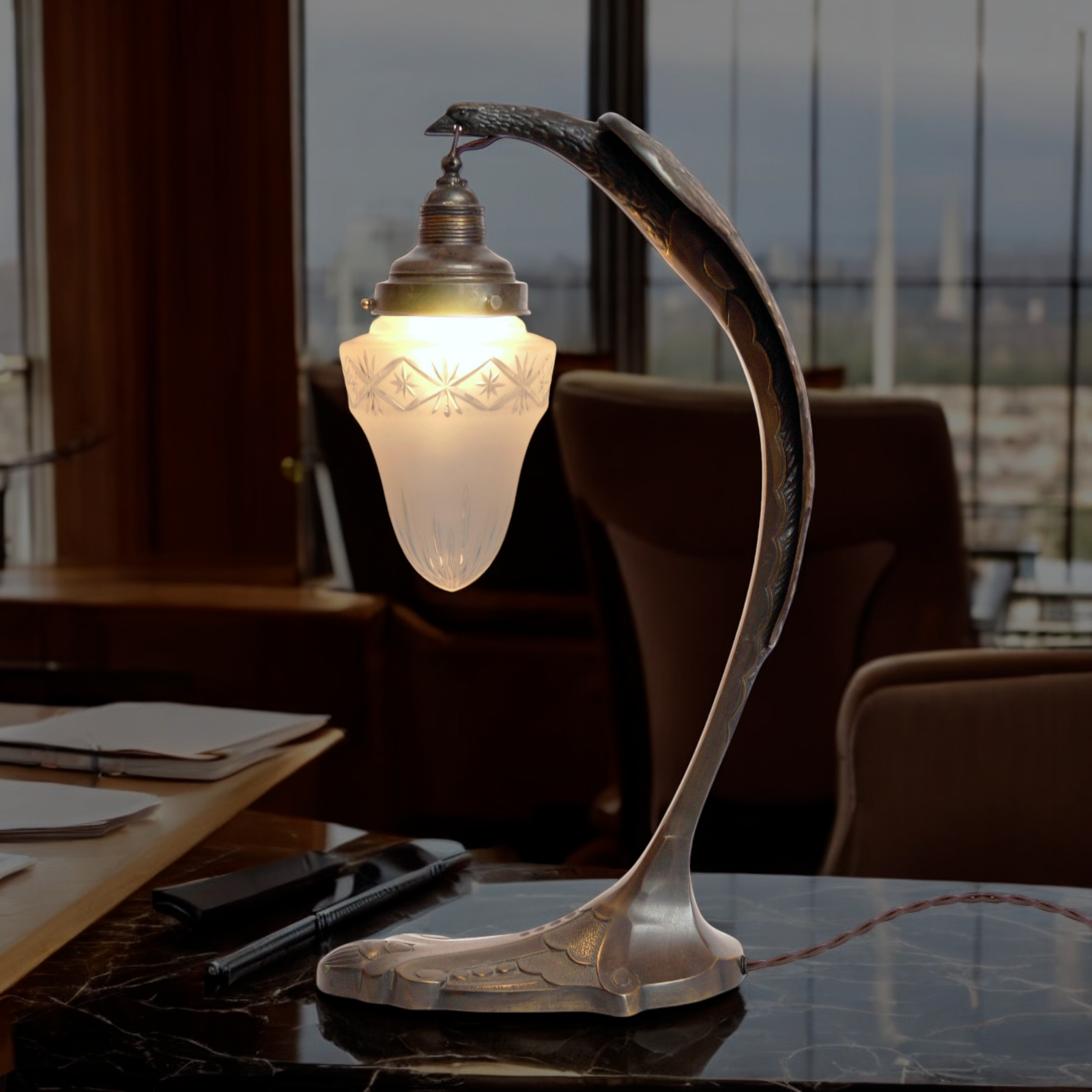Large Art Deco Table Lamp "SERPENT" Charles Ranc Brass Lamp 1920