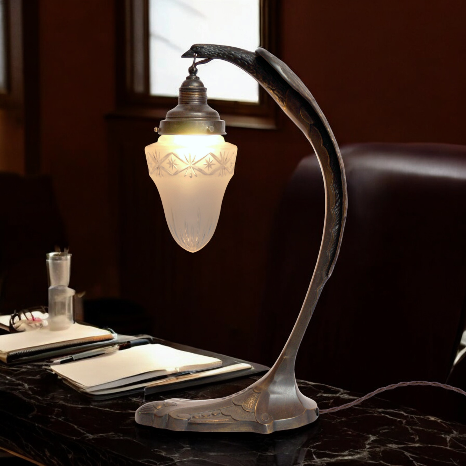 Beautiful Art Deco table lamp "Serpent" according to Charles Ranc.