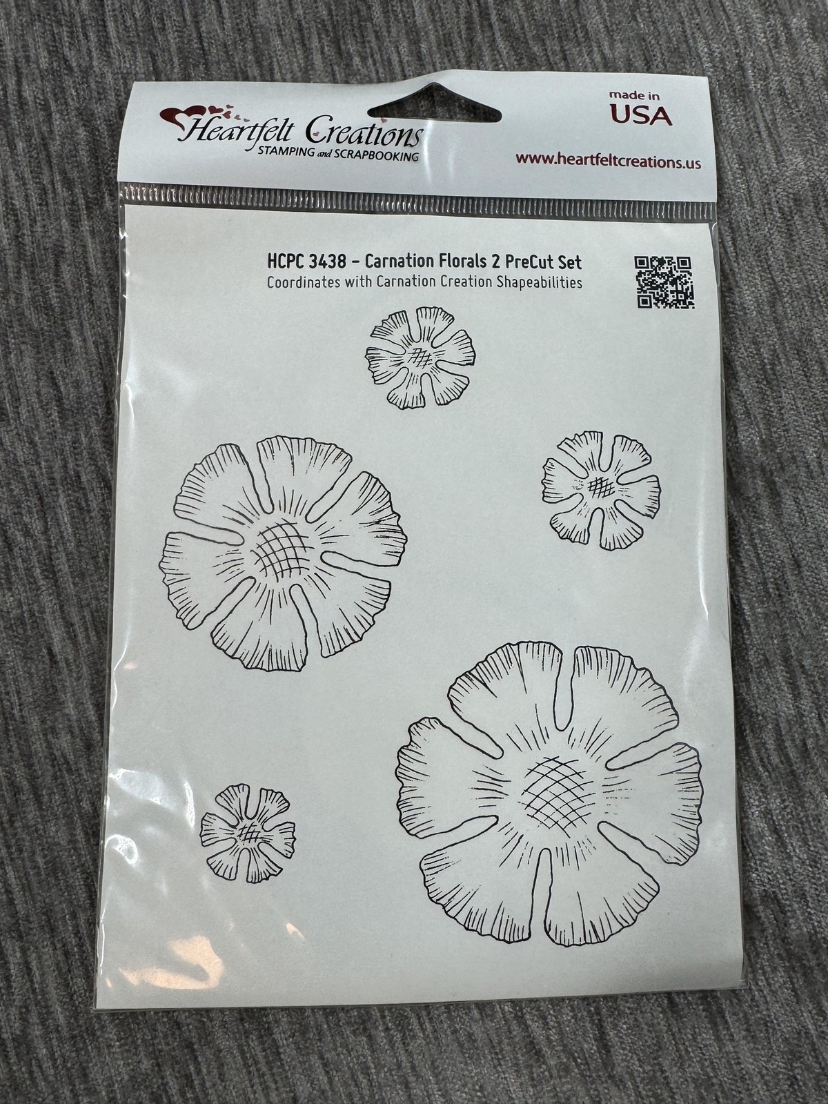 Heartfelt Creations Carnation Florals 2 Stamp PreCut Set HCPC 3438 Made in USA