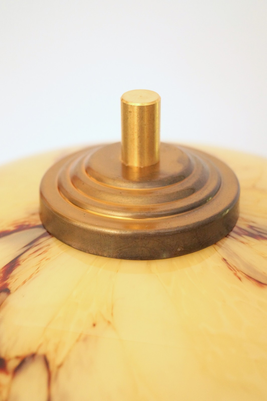 Verre d'opale Art deco originale, couleur creme, marbr braun , effet d'eclairage unique.
