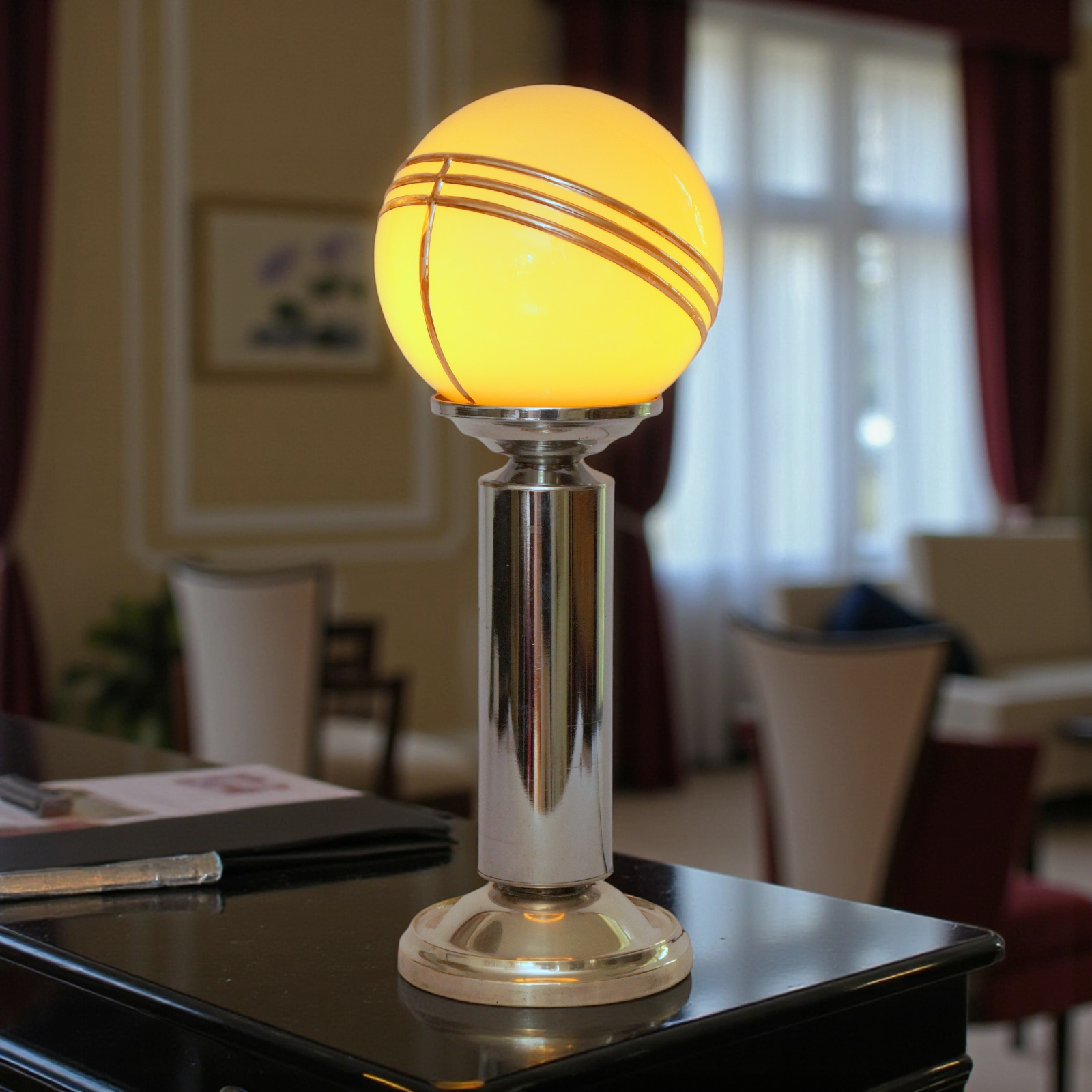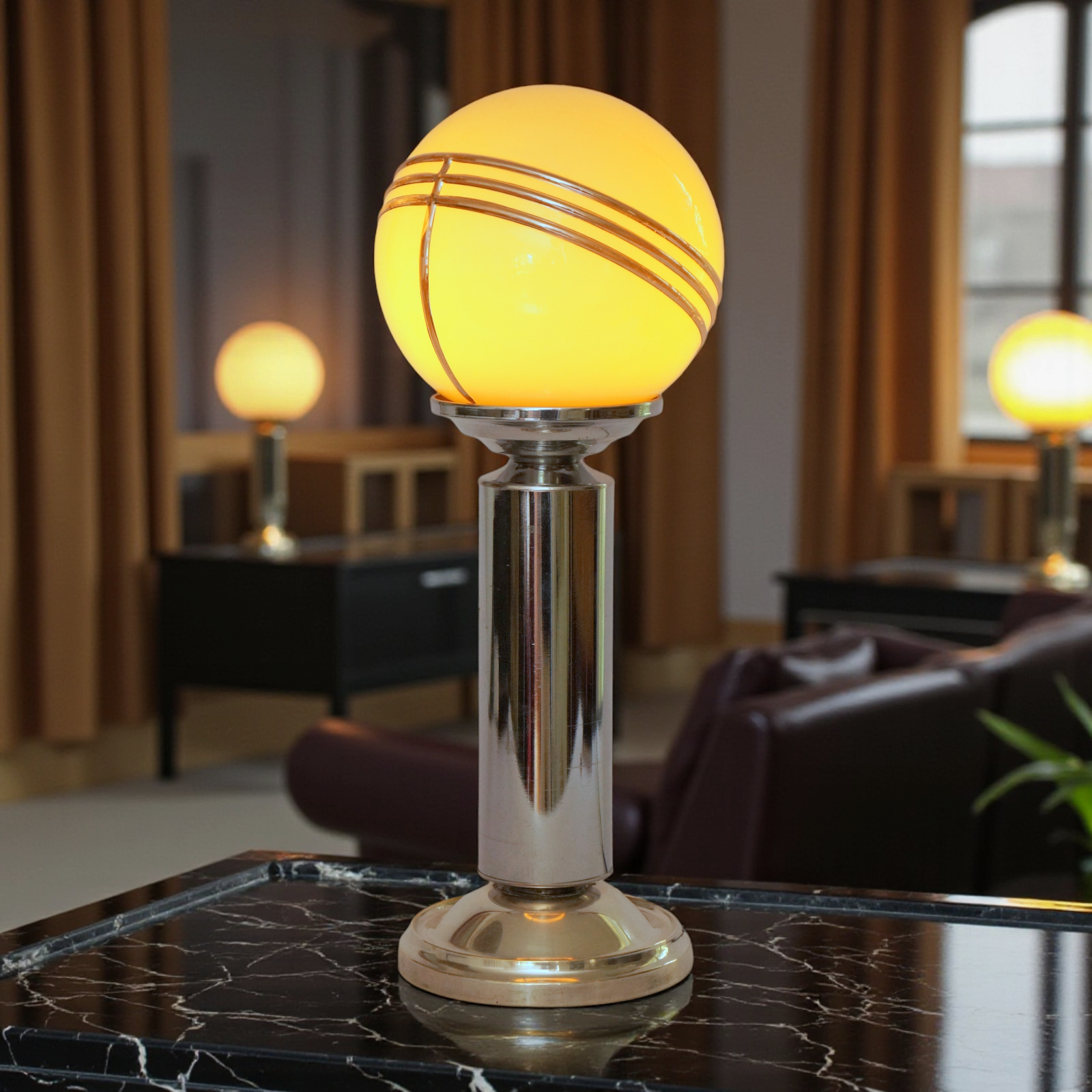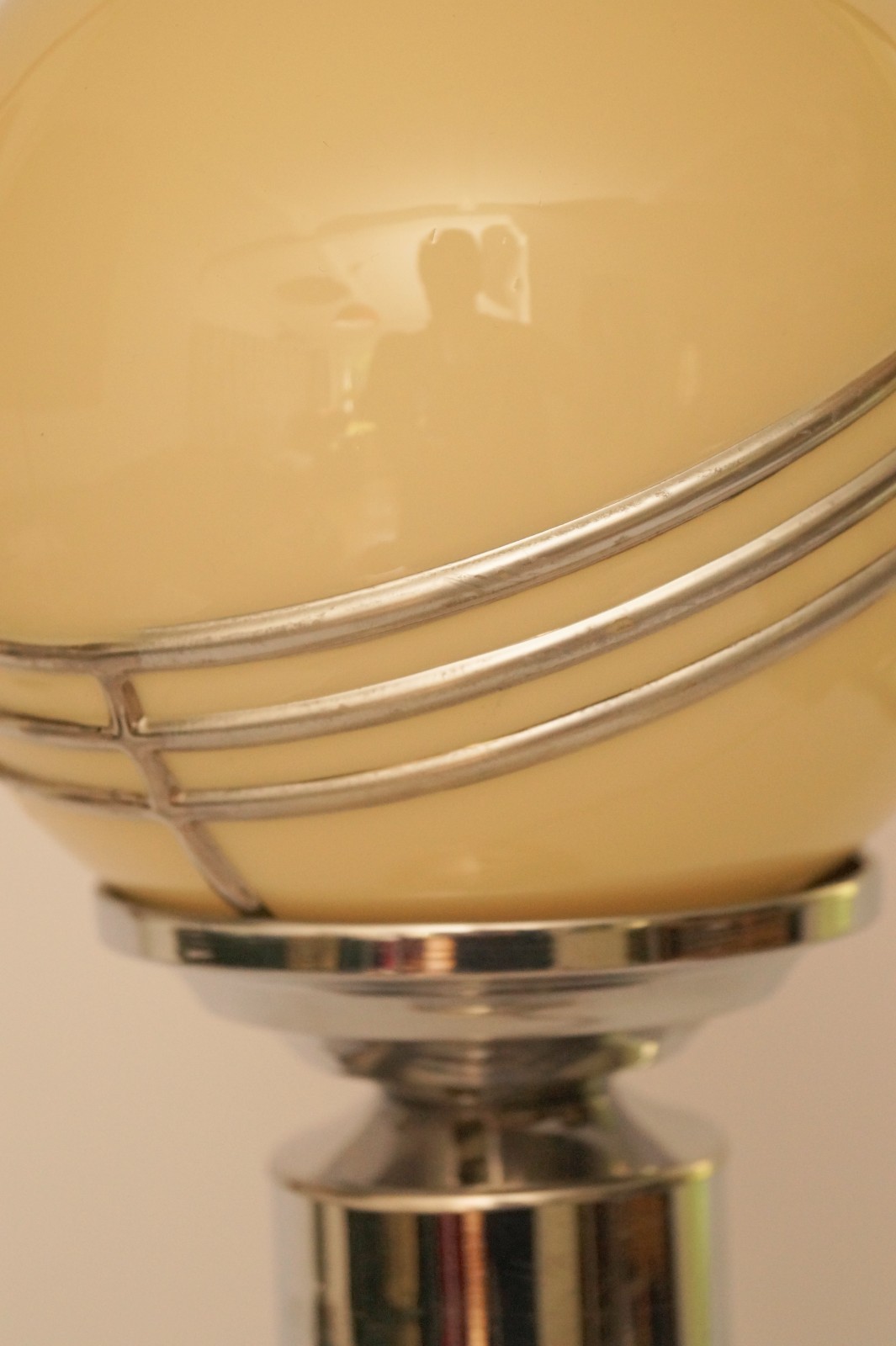 Verre d'opale Art deco tres rare, env. 1930, couleur creme. Les bandes d'argent sont partiellement frottees - voir des photos detaillees.